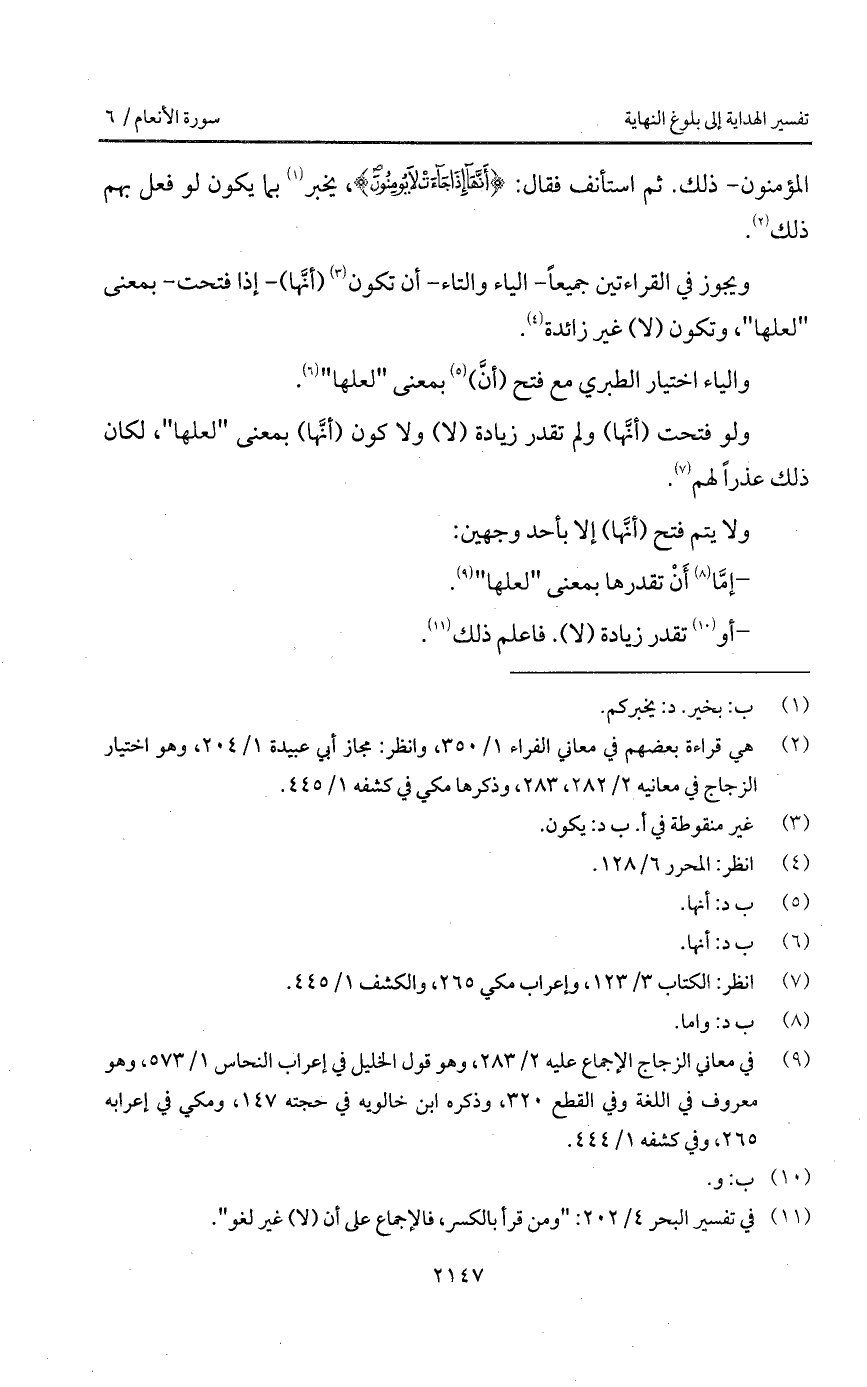 ويجوز في القراءتين جميعاً - الياء والتاء - أن تكون (أنَّها) - إذا فتحت - بمعنى " لعلها "، وتكون (لا) غير زائدة.