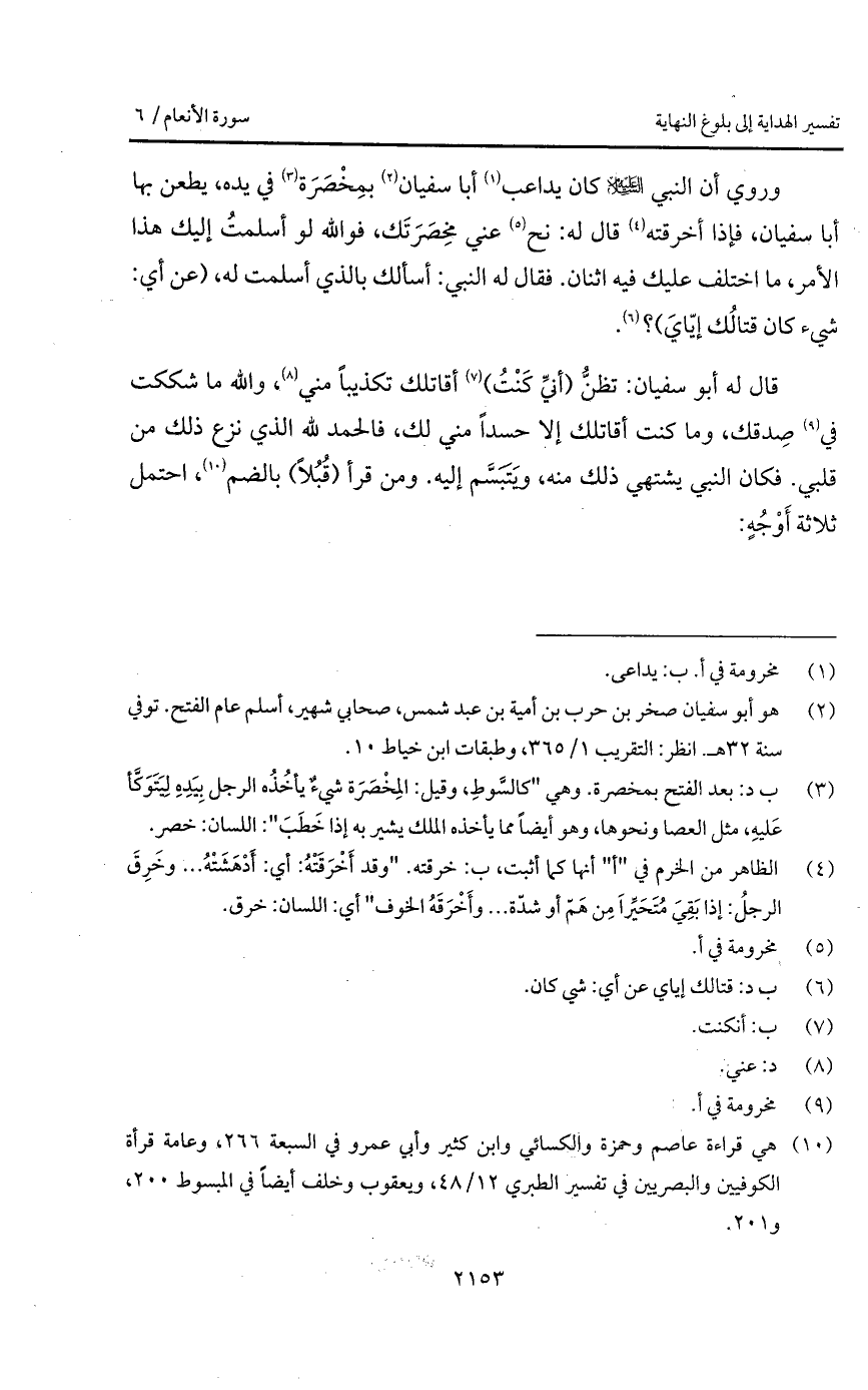 قال له أبو سفيان: تظنُّ (أنيِّ كَنْتُ) أقاتلك تكذيباً مني، والله ما شككت في صِدقك، وما كنت أقاتلك إلا حسداً مني لك، فالحمد لله الذي نزع ذلك من قلبي. فكان النبي يشتهي ذلك منه، ويَتَبَسَّم إليه " ومن قرأ (قُبُلاً) بالضم، احتمل ثلاثة أَوْجُهٍ: