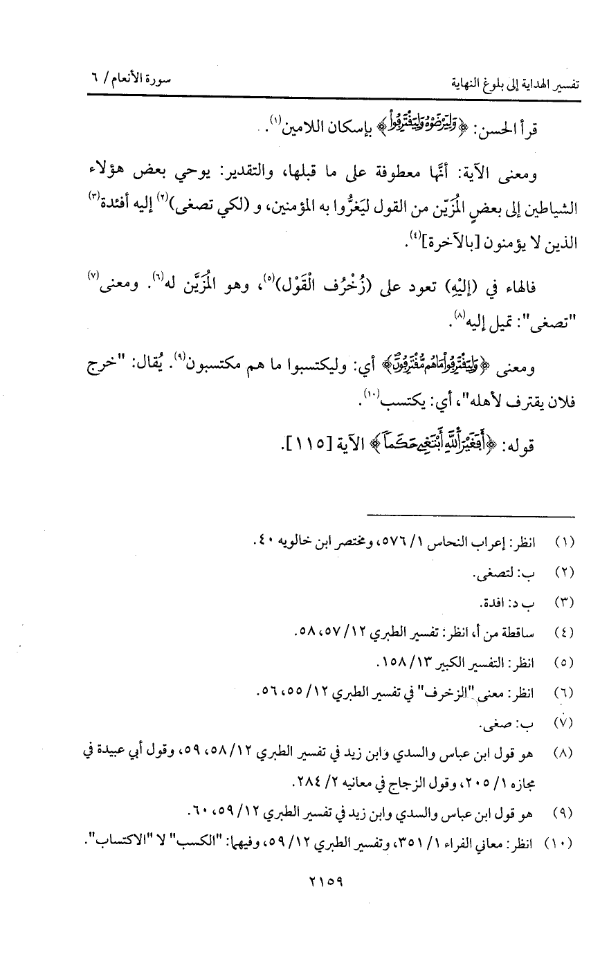 ومعنى الآية: أنَّها معطوفة على ما قبلها، والتقدير: يوحي بعض هؤلاء الشياطين إلى بعضٍ المُزَيّن من القول ليَغرُّوا به المؤمنين، و (لكي تصغى) إليه أفئدة الذين لا يؤمنون [بالآخرة].