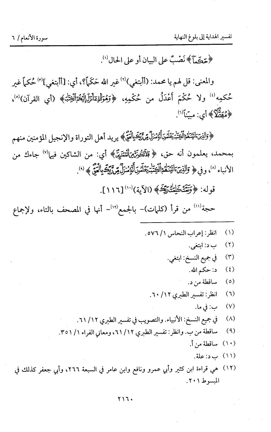 والمعنى: قل لهم يا محمد: (أأبتغي) غير الله حَكَماً؟، أي: [أأبتغي] حُكماً غير حُكمِه ولا حُكْمَ أَعْدَلُ من حُكْمِهِ، {وَهُوَ الذي أَنَزَلَ إِلَيْكُمُ الكتاب} (أي القرآن)، {مُفَصَّلاً} أي: مبيّناً.