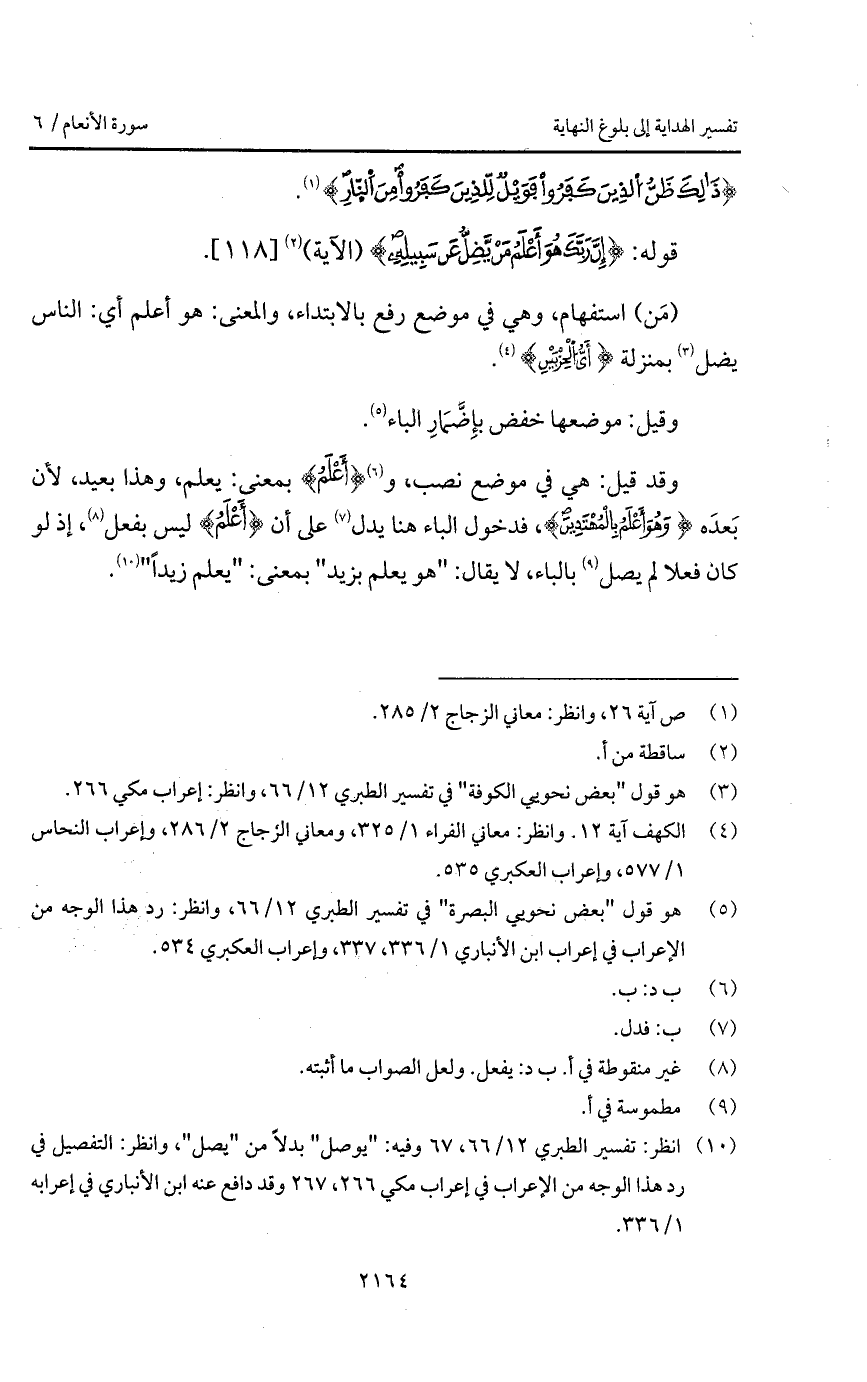 وقد قيل: هي في موضع نصب، و {أَعْلَمُ} بمعنى: يعلم، وهذا بعيد، لأن بَعدَه {وَهُوَ أَعْلَمُ بالمهتدين}، فدخول الباء هنا يدل على أن {أَعْلَمُ} ليس بفعل، إذ لو كان فعلا لم يصل بالباء، لا يقال: " هو يعلم بزيد " بمعنى: " يعلم زيداً ".