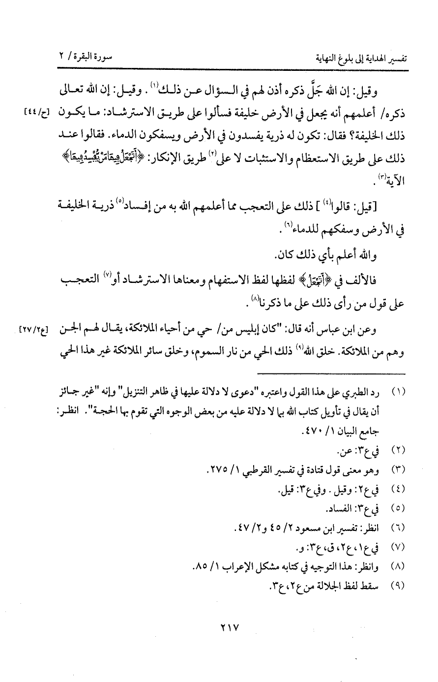 وعن ابن عباس أنه قال: " كان إبليس من / حي من أحياء الملائكة، يقال لهم الجن وهم من الملائكة. خلق الله ذلك الحي من نار السموم، وخلق سائر الملائكة غير هذا الحي