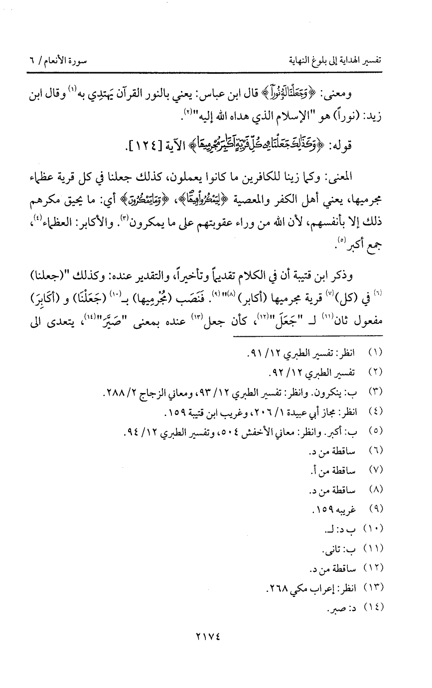 وذكر ابن قتيبة أن في الكلام تقديماً وتأخيراً، والتقدير عنده: وكذلك " (جعلنا) في (كل) قرية مجرميها (أكابر) ". فَنَصَب (مُجْرمِيها بـ (جَعَلْنَا) و (أكَابِرَ) مفعول ثان ل " جَعَلَ "، كأن جعل عنده بمعنى " صَيَّرَ "، يتعدى الى