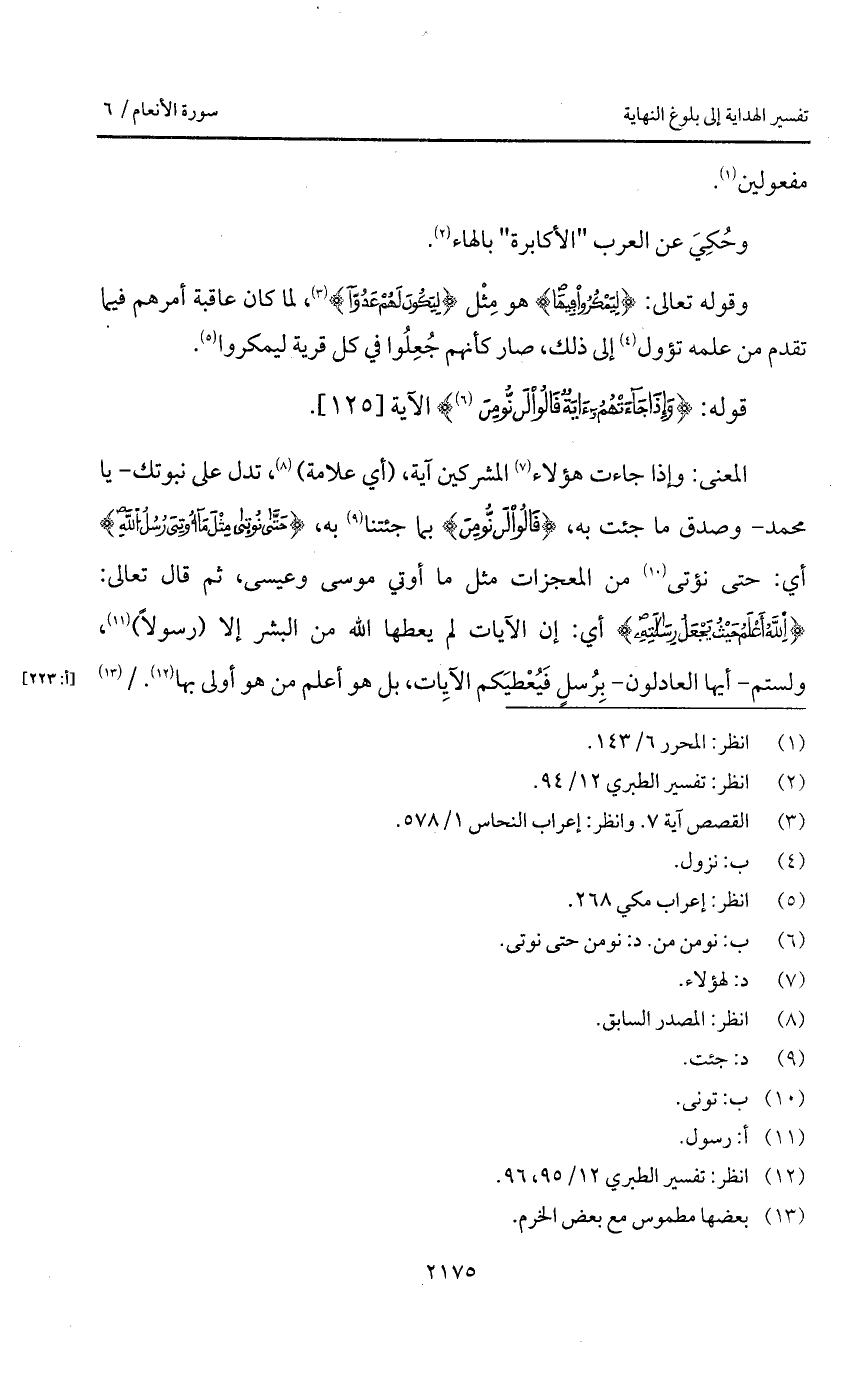 المعنى: وإذا جاءت هؤلاء المشركين آية، (أي علامة)، تدل على نبوتك - يا محمد - وصدق ما جئت به، {قَالُواْ لَن نُّؤْمِنَ} بما جئتنا به، {حتى نؤتى مِثْلَ مَآ أُوتِيَ رُسُلُ الله} أي: حتى نؤتى من المعجزات مثل ما أوتي موسى وعيسى، ثم قال تعالى: {الله أَعْلَمُ حَيْثُ يَجْعَلُ رِسَالَتَهُ} أي: إن الآيات لم يعطها الله من البشر إلا (رسولاً)، ولستم - أيها العادلون - بِرُسلٍ فَيُعْطيَكم الآيِات، بل هو أعلم من هو أولى بها. /