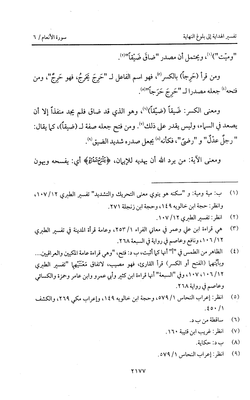 ومعنى الكسر: ضَيقاً (ضيّقاً)، وهو الذي قد ضاق فلم يجد منفذاً إلا أن يصعد في السماء، وليس يقدر على ذلك. ومن فتح جعله صفة ل (ضيقاً)، كما يقال: " رجلٌ عدْلٌ " و " رضىً "، فكأنه يجعل صدره شديد الضيق.