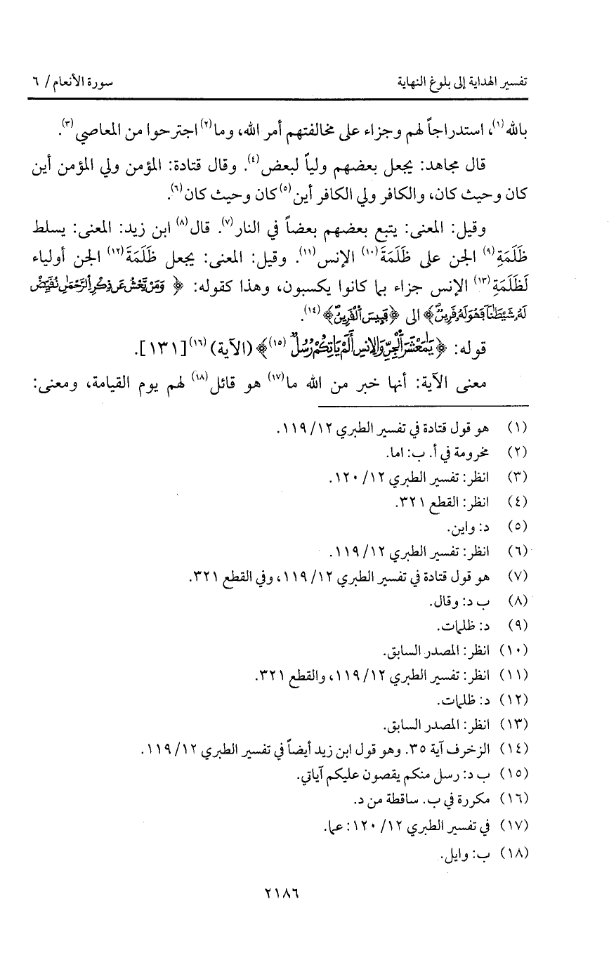 وقيل: المعنى: يتبع بعضهم بعضاً في النار. قال ابن زيد: المعنى: يسلط ظَلَمَةِ الجن على ظَلَمَةَ الإنس. وقيل: المعنى: يجعل ظَلَمَةَ الجن أولياء لَظَلَمَةِ الإنس جزاء بما كانوا يكسبون، وهذا كقوله: {وَمَن يَعْشُ عَن ذِكْرِ الرحمن نُقَيِّضْ لَهُ شَيْطَاناً فَهُوَ لَهُ قَرِينٌ} [الزخرف: 36] إلى {فَبِئْسَ القرين} [الزخرف: 38].