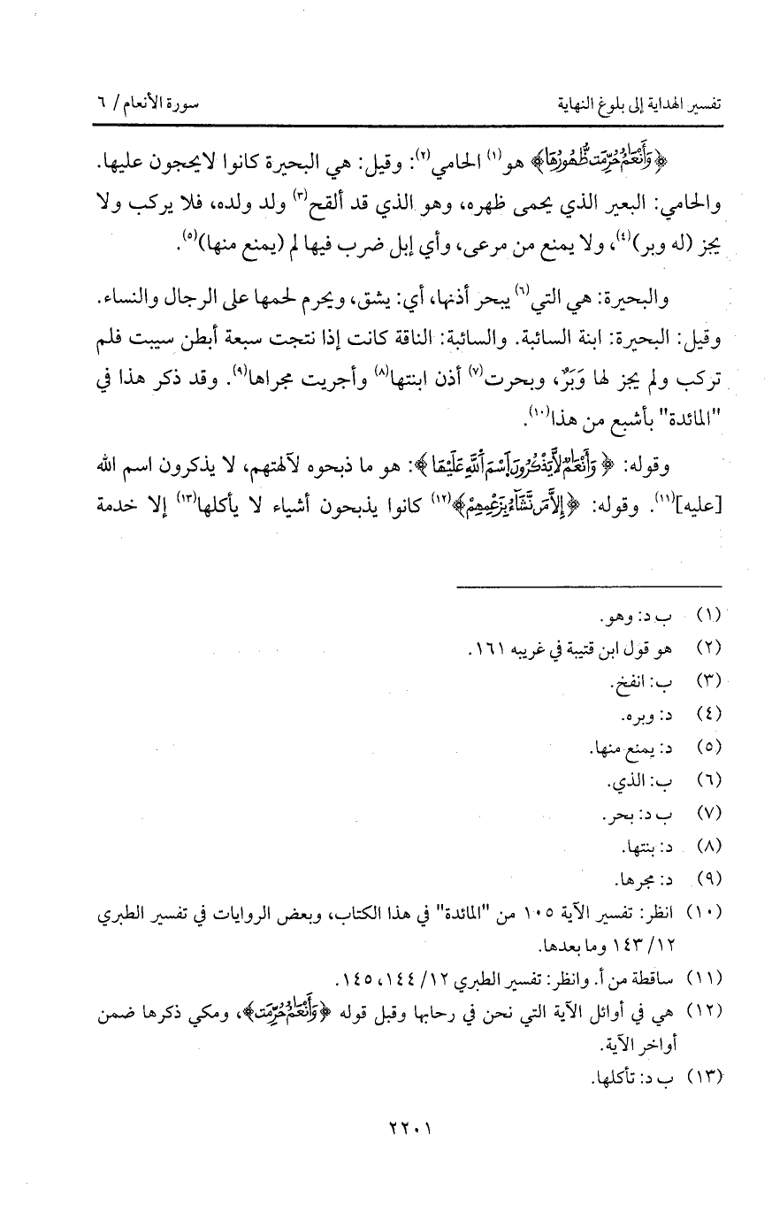 والبحيرة: هي التي يبحر أذنها، أي: يشق، ويحرم لحمها على الرجال والنساء. وقيل: البحيرة: ابنة السائبة. والسائبة: الناقة كانت إذا نتجت سبعة أبطن سيبت فلم تركب ولم يجز لها وَبَرٌ، وبحرت أذن ابنتها وأجريت مجراها. وقد ذكر هذا في " المائدة " بأشبع من هذا.