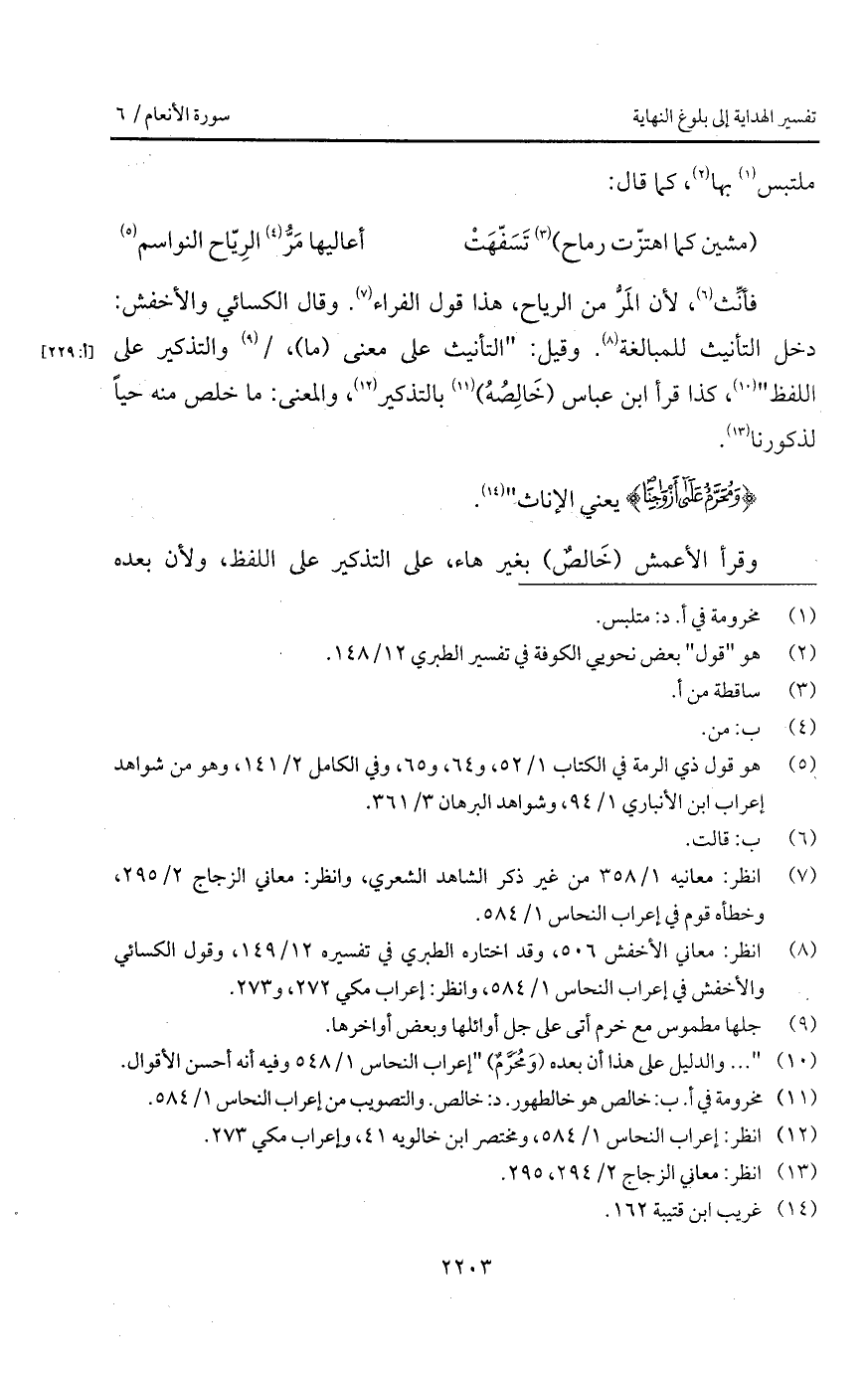 فأنِّث، لأن المَرُّ من الرياح، هذا قول الفراء. وقال الكسائي والأخفش: دخل التأنيث للمبالغة. وقيل: " التأنيث على معنى (ما)، / والتذكير على اللفظ "، كذا قرأ ابن عباس (خَالِصُهُ) بالتذكير، والمعنى: ما خلص منه حياً لذكورنا.