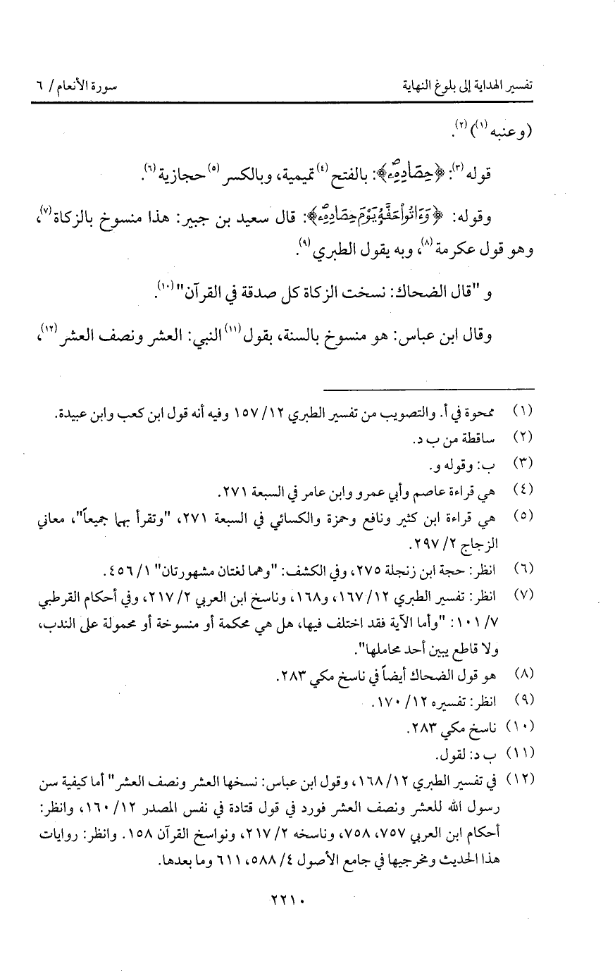 وقوله: {وَآتُواْ حَقَّهُ يَوْمَ حَصَادِهِ}: قال سعيد بن جبير: هذا منسوخ بالزكاة، وهو قول عكرمة، وبه يقول الطبري.