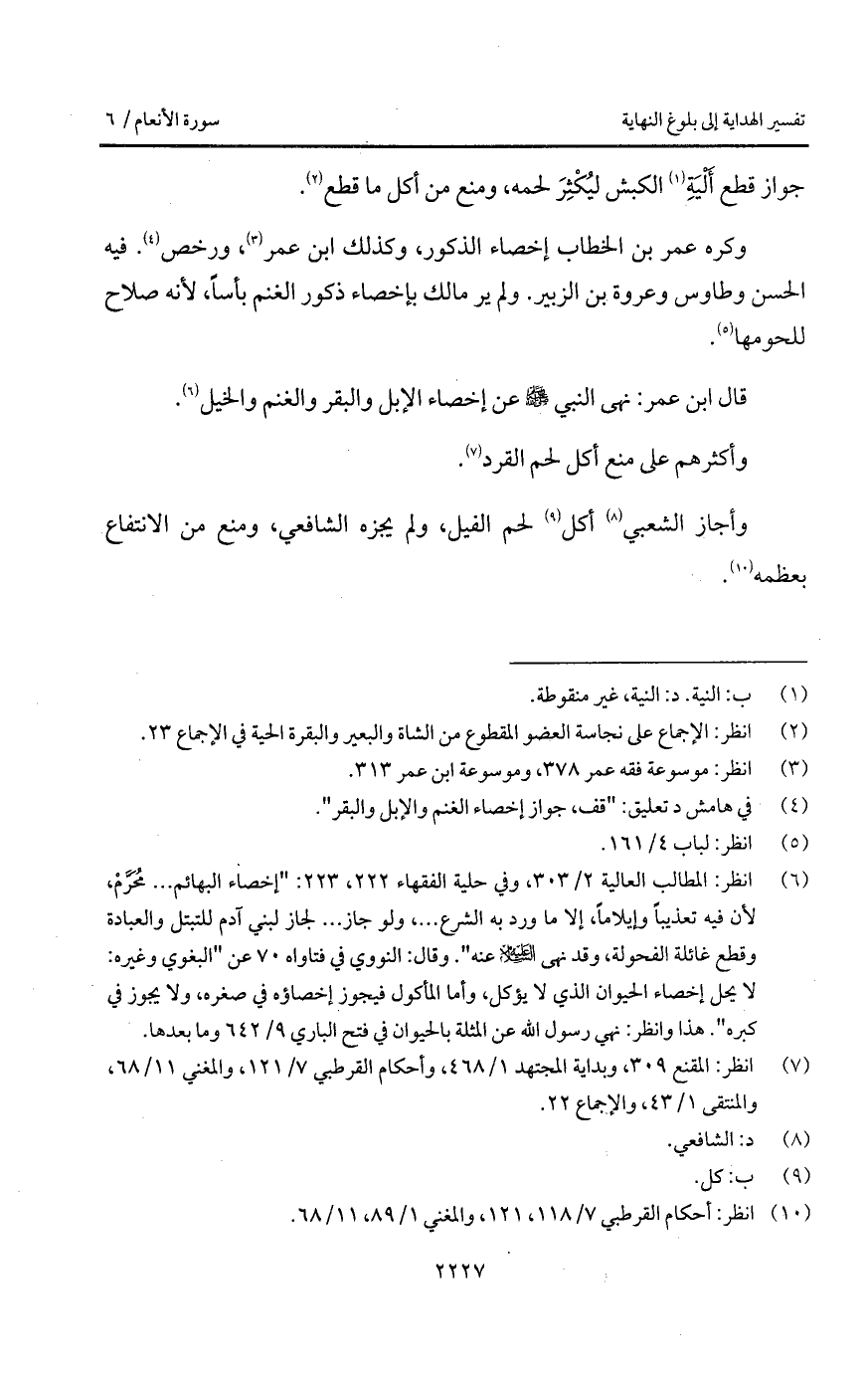 قال ابن عمر: نهى النبي A عن إخصاء الإبل والبقر والغنم والخيل.