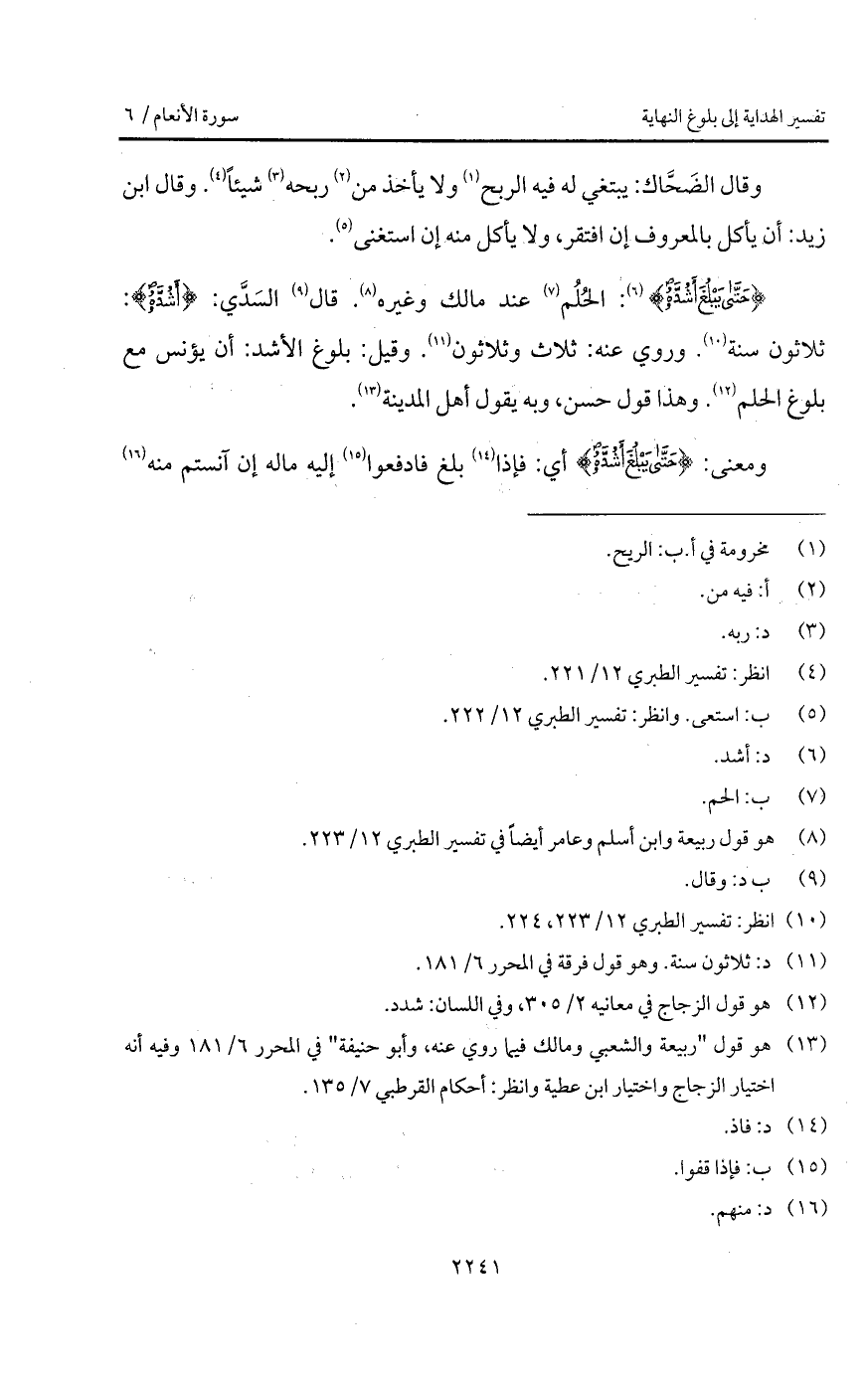 {حتى يَبْلُغَ أَشُدَّهُ}: الحُلُم عند مالك وغيره. قال السَدَّي: {أَشُدَّهُ}: ثلاثون سنة. وروي عنه: ثلاث وثلاثون. وقيل: بلوغ الأشد: أن يؤنس مع بلوغ الحلم. وهذا قول حسن، وبه يقول أهل المدينة.