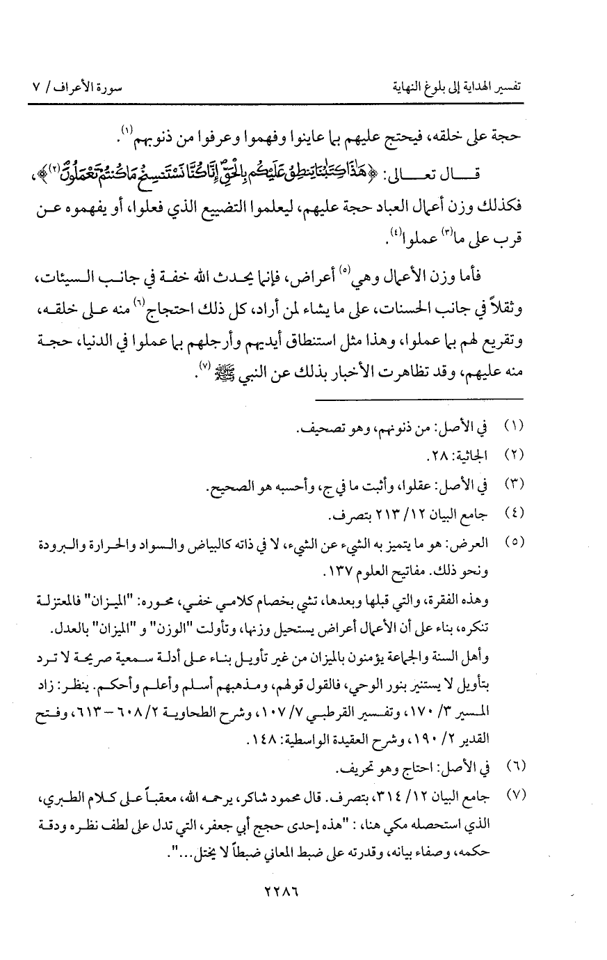قال تعالى: {هذا كِتَابُنَا يَنطِقُ عَلَيْكُم بالحق إِنَّا كُنَّا نَسْتَنسِخُ مَا كُنتُمْ تَعْمَلُونَ} [الجاثية: 29]، فكذلك وزن أعمال العباد حجة عليهم، ليعلموا التضييع الذي فعلوا، أو يفهموه عن قرب على ما عملوا.