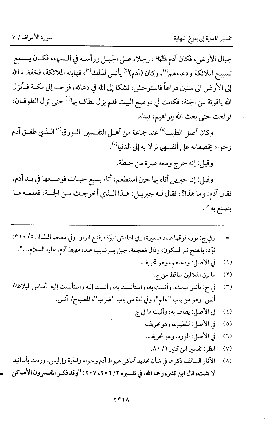 جبال الأرض، فكان آدم عليه السلام، رجلاه على الجبل ورأسه في السماء، فكان يسمع تسبيح الملائكة ودعاءهم، وكان (آدم) يأنس لذلك، فهابته الملائكة، فخفضه الله إلى الأرض إلى ستين ذراعاً فاستوحش، فشكا إلى الله في دعائه، فوجه إلى مكة فأنزل الله ياقوتة من الجنة، فكانت في موضع البيت فلم يزل يطاف بها حتى نزل الطوفان، فرفعت حتى بعث الله إبراهيم، فبناه.