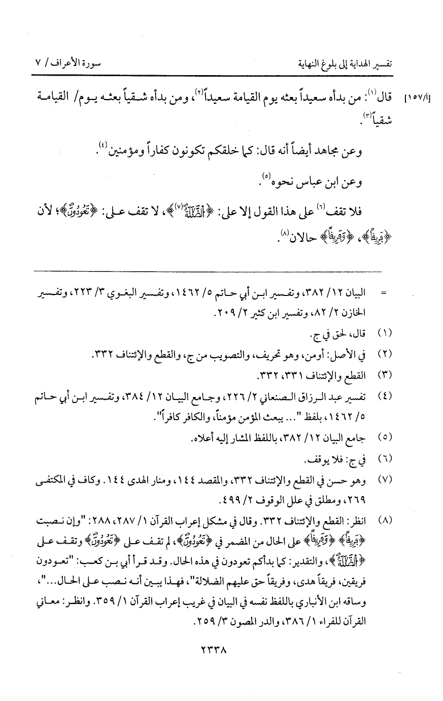 فلا تقف على هذا القول إلا على: {الضلالة}، لا تقف على: {تَعُودُونَ}؛ لأن {فَرِيقاً}، {وَفَرِيقاً} حالان.