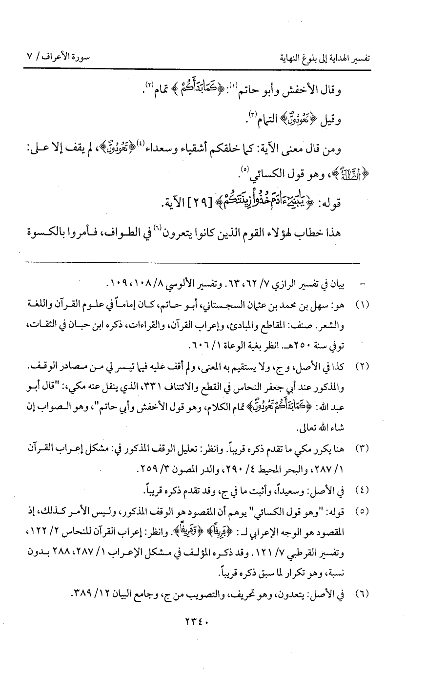 ومن قال معنى الآية: كما خلقكم أشقياء وسعداء {تَعُودُونَ}، لم يقف إلا على: {الضلالة}، وهو قول الكسائي.