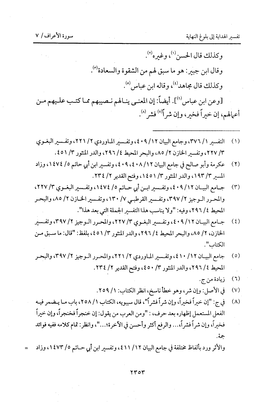 [وعن ابن عباس]. أيضاً: إن المعنى ينالهم نصيبهم مما كتب عليهم من أعمالهم، إن خيراً فخير، وإن شراً فشر.