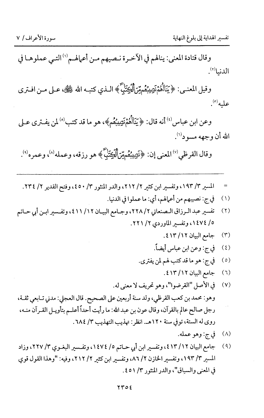 وقال القرظي المعنى إن: {نَصِيبُهُم مِّنَ الكتاب} هو رزقه، وعمله، وعمره.