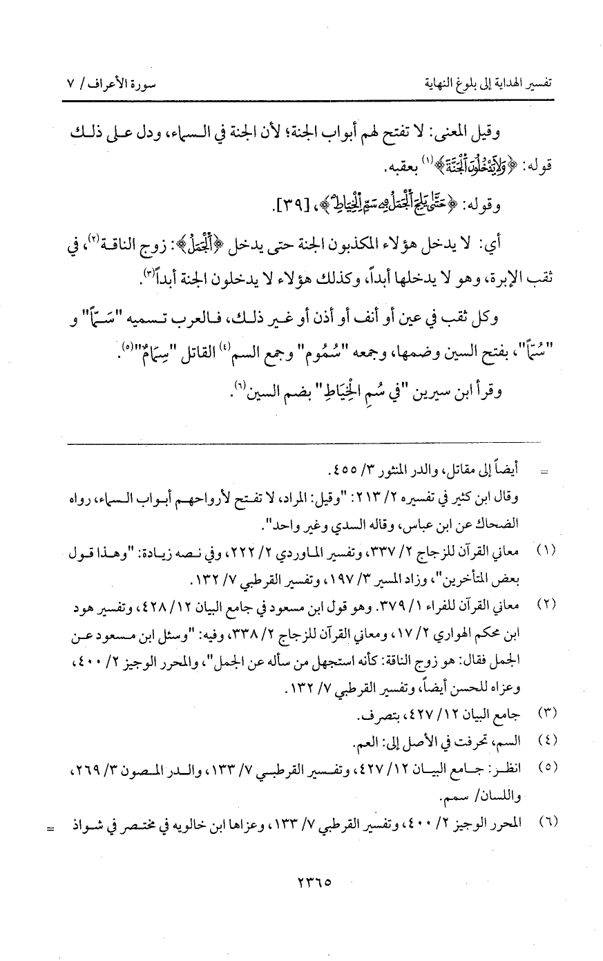 وقوله: {حتى يَلِجَ الجمل فِي سَمِّ الخياط}.