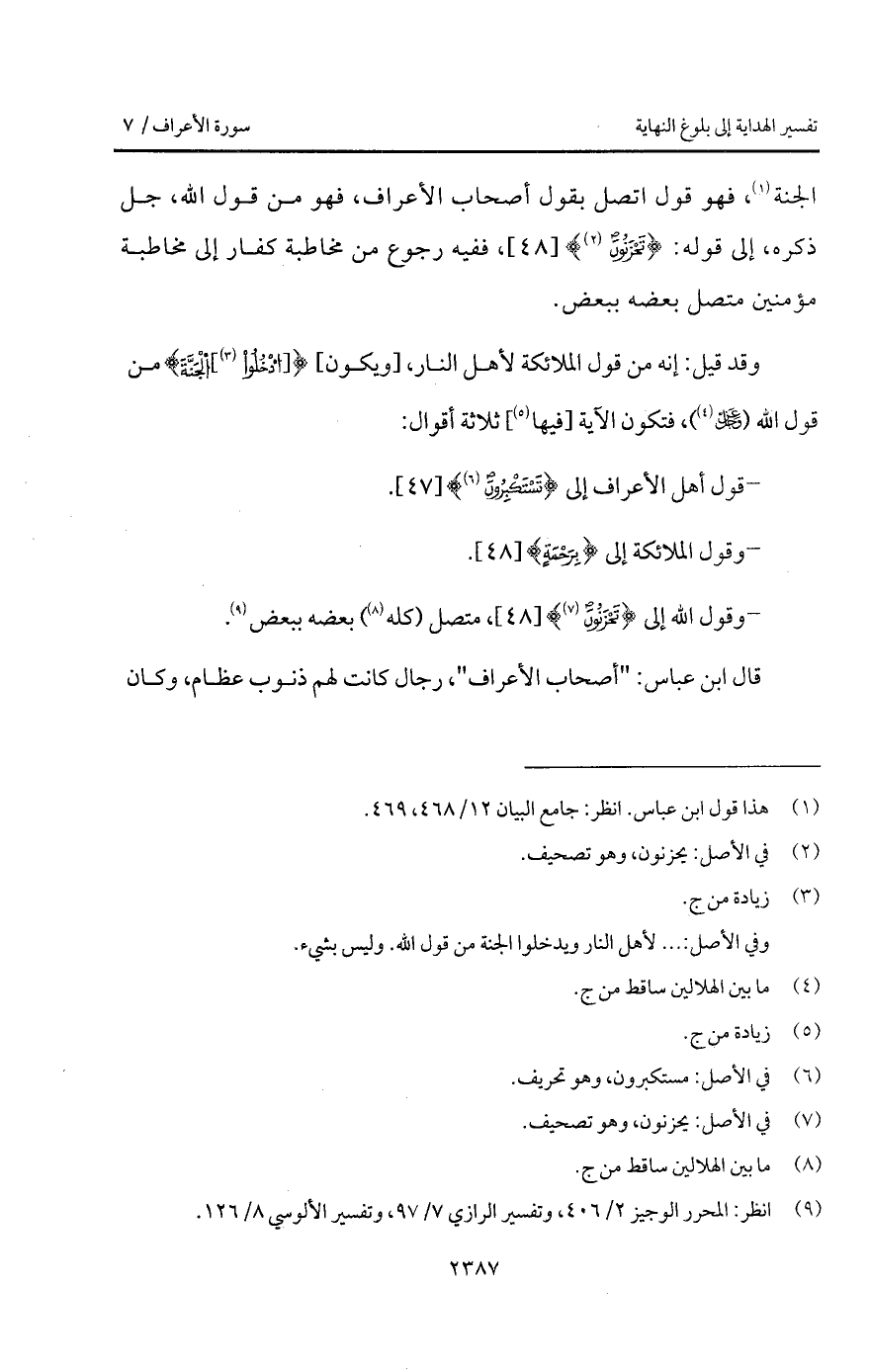 - قول أهل الأعراف إلى {تَسْتَكْبِرُونَ} [الأعراف: 48].