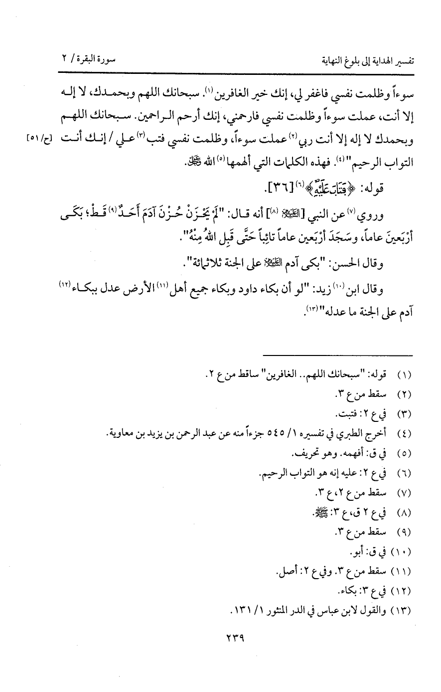 سوءاً وظلمت نفسي فاغفر لي، إنك خير الغافرين. سبحانك اللهم وبحمدك، لا إله إلا أنت، عملت سوءاً وظلمت نفسي فارحمني، إنك أرحم الراحمين. سبحانك اللهم وبحمدك لا إله إلا أنت ربي عملت سوءاً، وظلمت نفسي فتب علي / إنك أنت التواب الرحيم ". فهذه الكلمات التي ألهمها الله D.