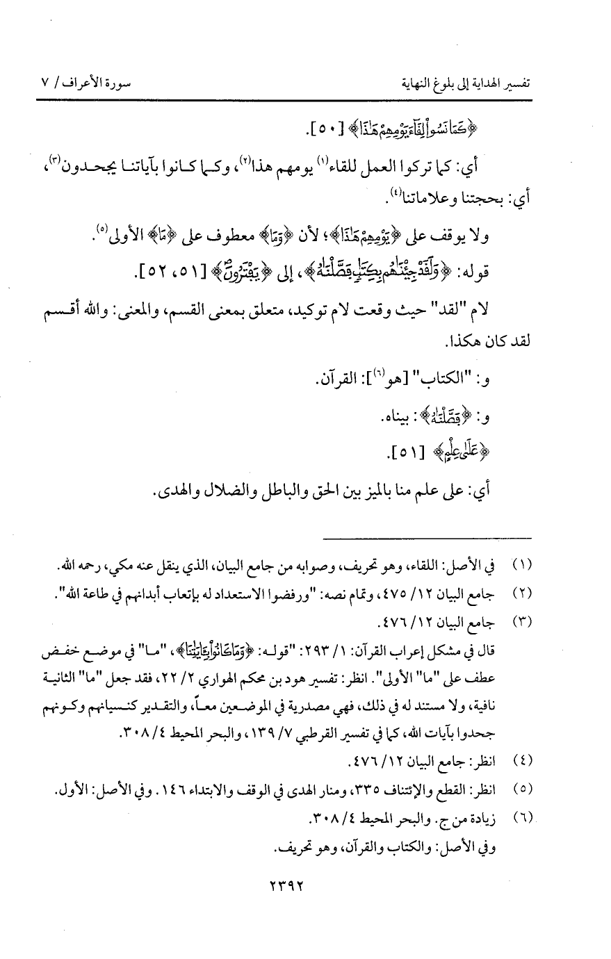 قوله: {وَلَقَدْ جِئْنَاهُمْ بِكِتَابٍ فَصَّلْنَاهُ}، إلى {يَفْتَرُونَ}.