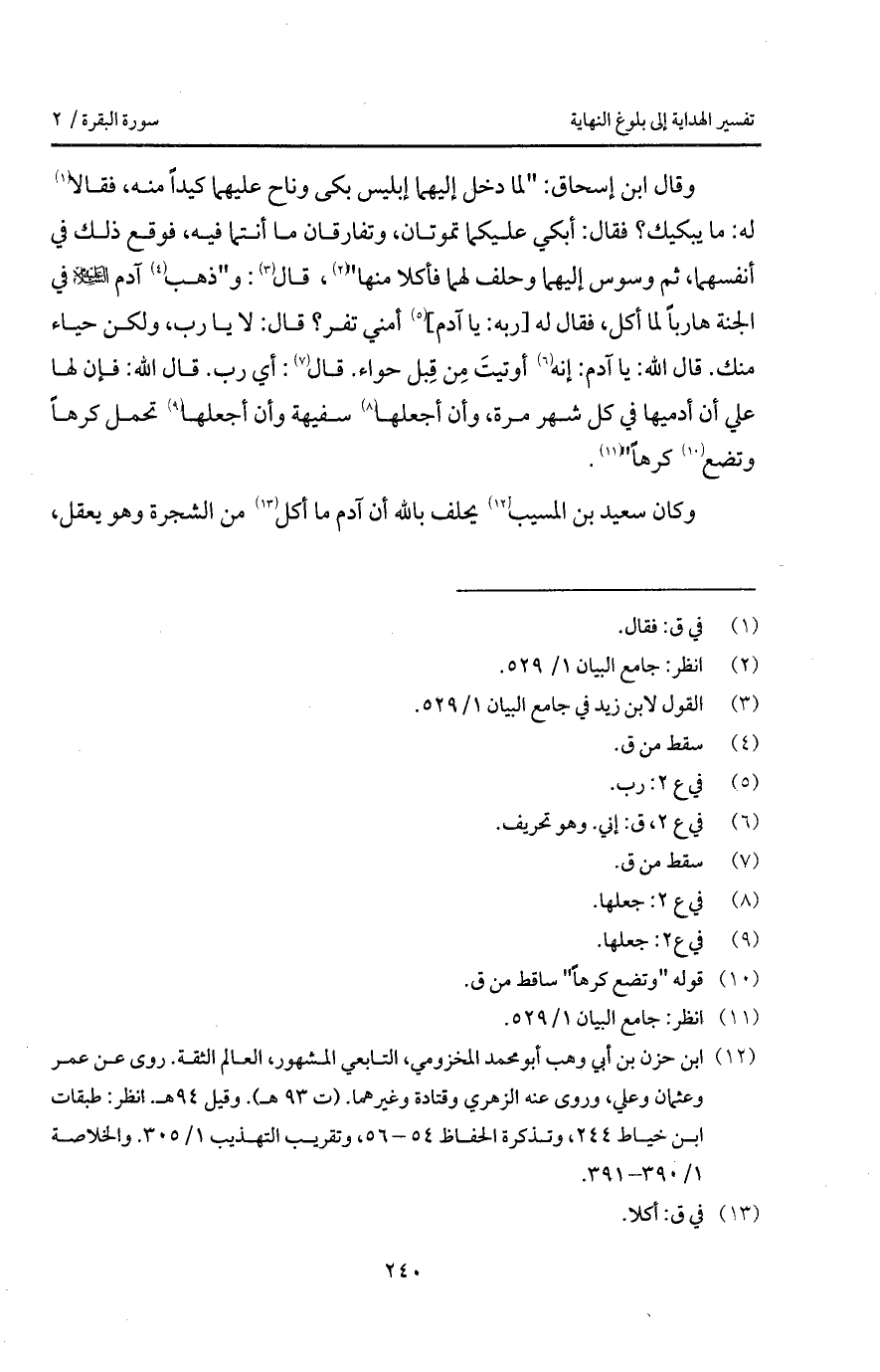 وكان سعيد بن المسيب يحلف بالله أن آدم ما أكل من الشجرة وهو يعقل،