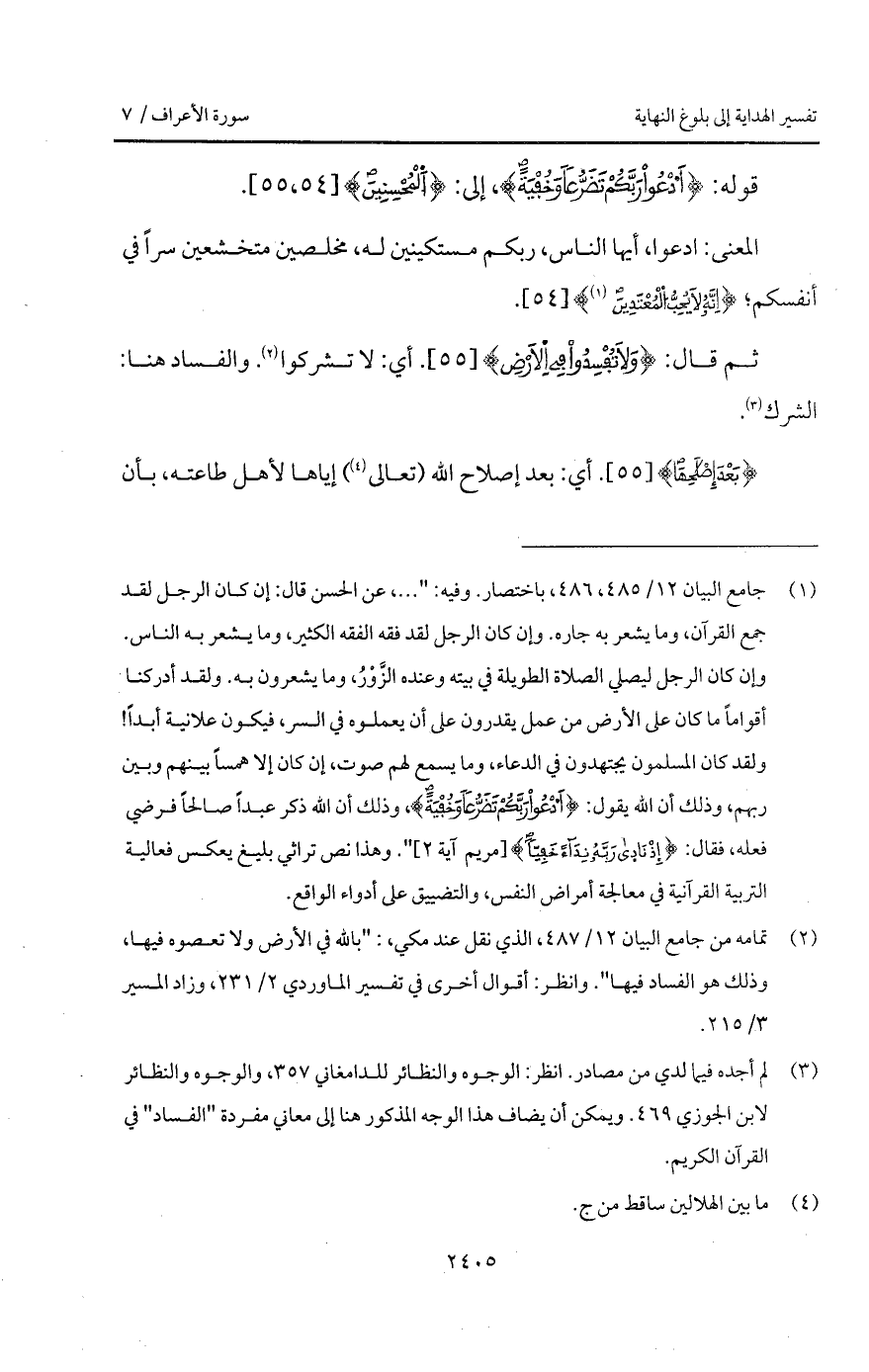 قوله: {ادعوا رَبَّكُمْ تَضَرُّعاً وَخُفْيَةً}، إلى: {المحسنين}.