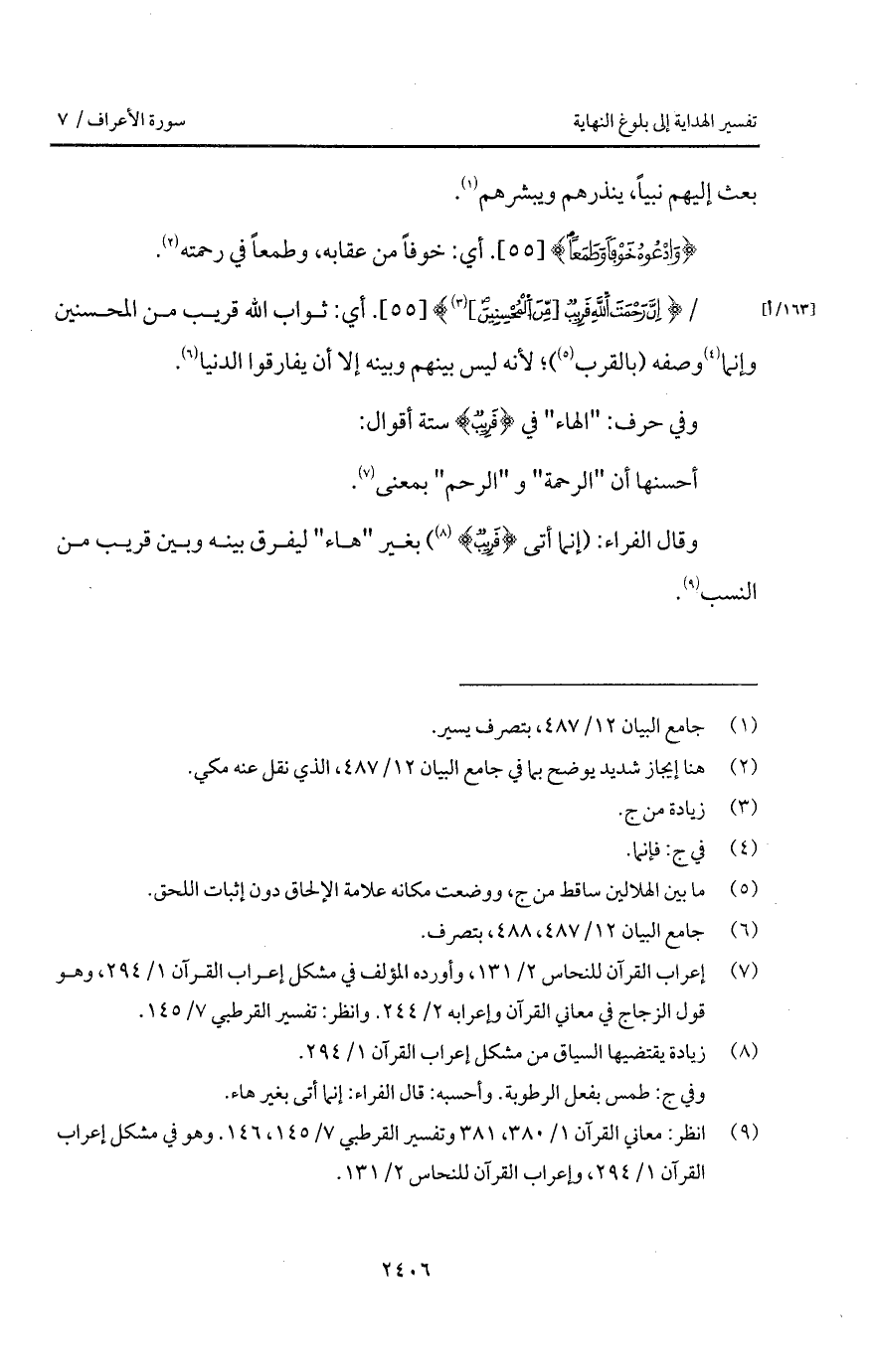 / {إِنَّ رَحْمَتَ الله قَرِيبٌ [مِّنَ المحسنين]}. أي: ثواب الله قريب من المحسنين وإنما وصفه (بالقرب)؛ لأنه ليس بينهم وبينه إلا أن يفارقوا الدنيا.
