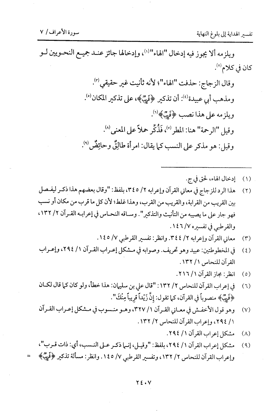 ويلزمه ألا يجوز فيه أدخال " الهاء "، وإدخالها جائز عند جميع النحويين لو كان في كلام.