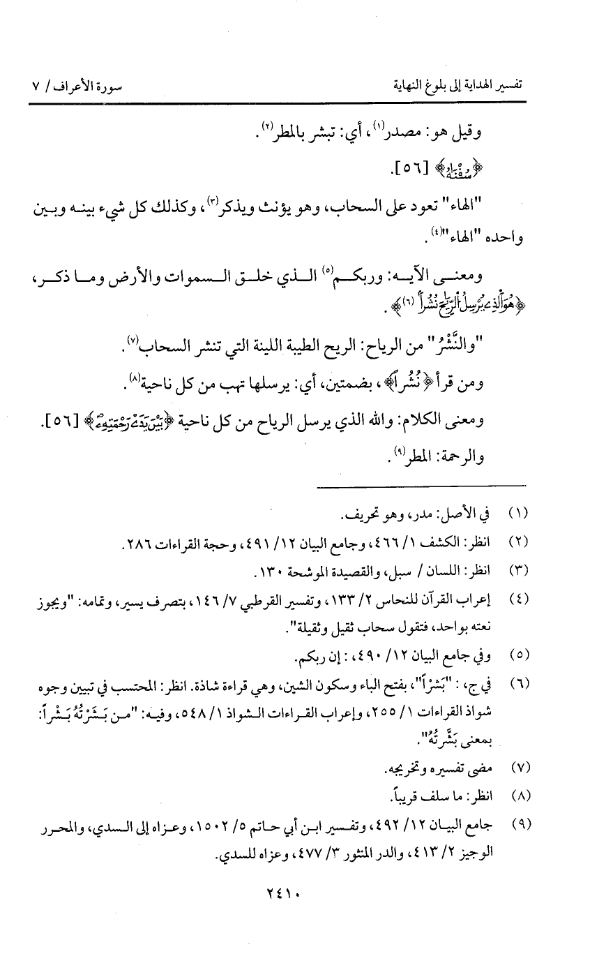 ومعنى الكلام: والله الذي يرسل الرياح من كل ناحية {بَيْنَ يَدَيْ رَحْمَتِهِ}.