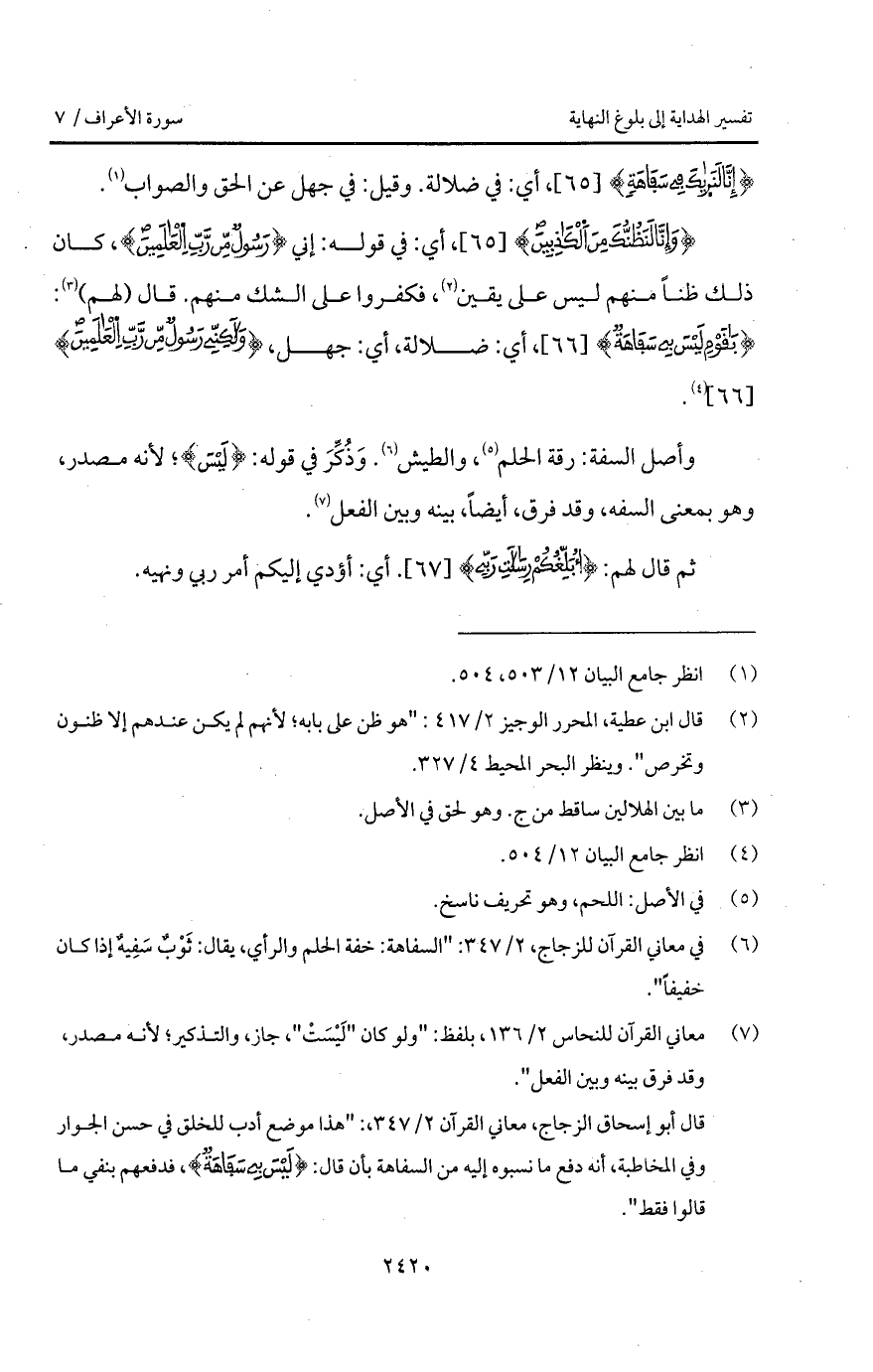 {وِإِنَّا لَنَظُنُّكَ مِنَ الكاذبين}، أي: في قوله: إني {رَسُولٌ مِّن رَّبِّ العالمين}، كان ذلك ظناً منهم ليس على يقين، فكفروا على الشك منهم. قال (لهم): {ياقوم لَيْسَ بِي سَفَاهَةٌ}، أي: ضلالة، أي: جهل، {ولكني رَسُولٌ مِّن رَّبِّ العالمين}.