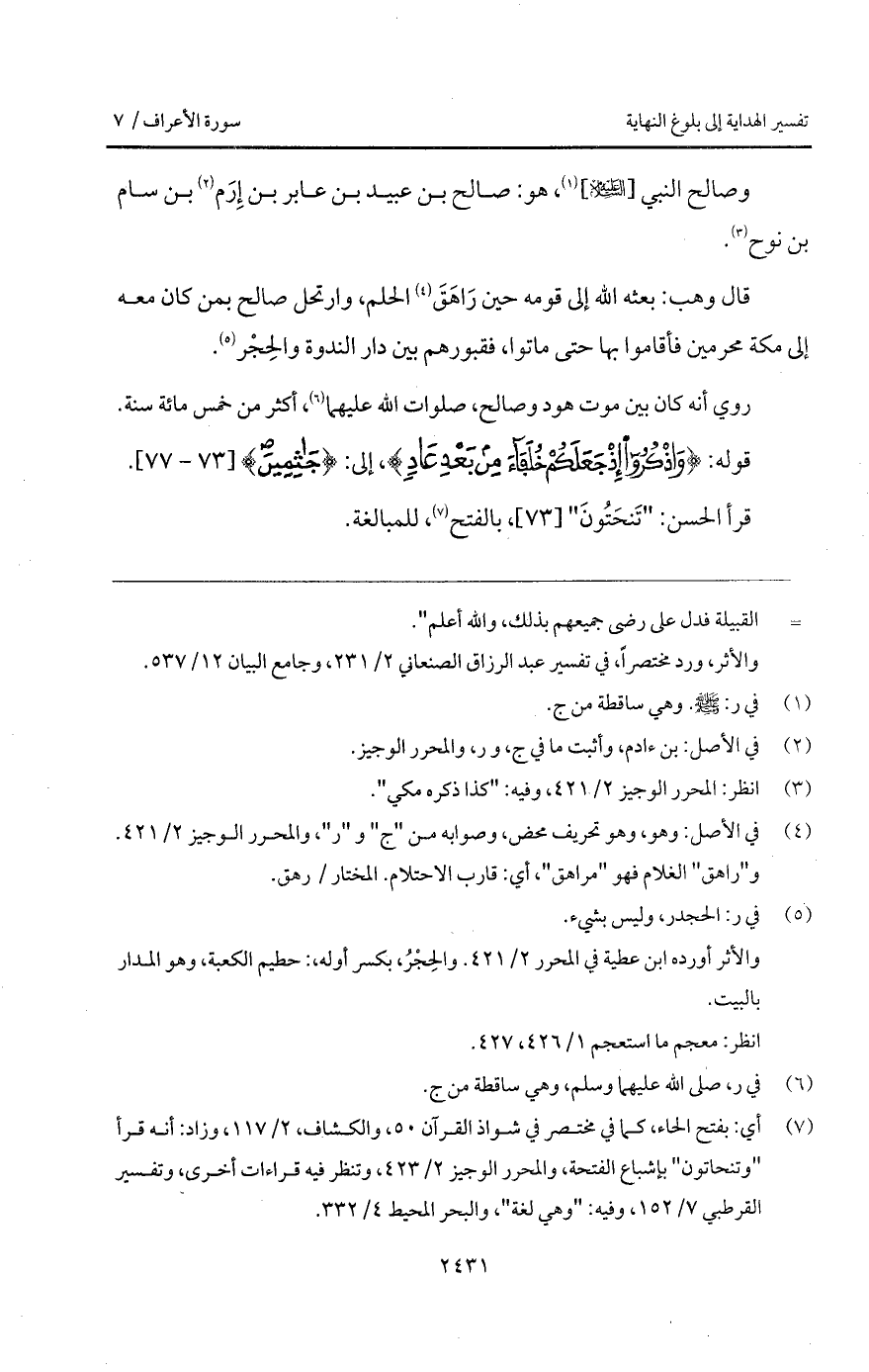 وصالح النبي [عليه السلام]، هو: صالح بن عبيد بن عابر بن إِرَم بن سام بن نوح.