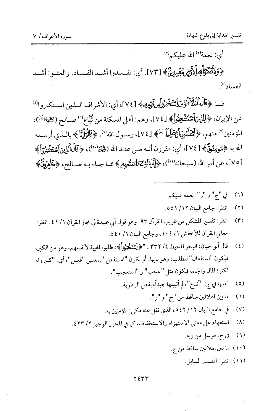 ف: {قَالَ الملأ الذين استكبروا مِن قَوْمِهِ}، أي: الأشراف الذين استكبروا عن الإيمان، {لِلَّذِينَ استضعفوا}، وهم: أهل المسكنة من تُبَّاع صالح (عليه السلام)، المؤمنين منهم، {أَتَعْلَمُونَ أَنَّ صَالِحاً}، رسول الله، {قالوا إِنَّا} بالذي أرسله الله به {مُؤْمِنُونَ}، أي: مقرون أنه من عند الله ( D) ، { قَالَ الذين استكبروا}، عن أمر الله (سبحانه)، {إِنَّا بالذي آمَنتُمْ بِهِ} ما جاء به صالح، {كَافِرُونَ}