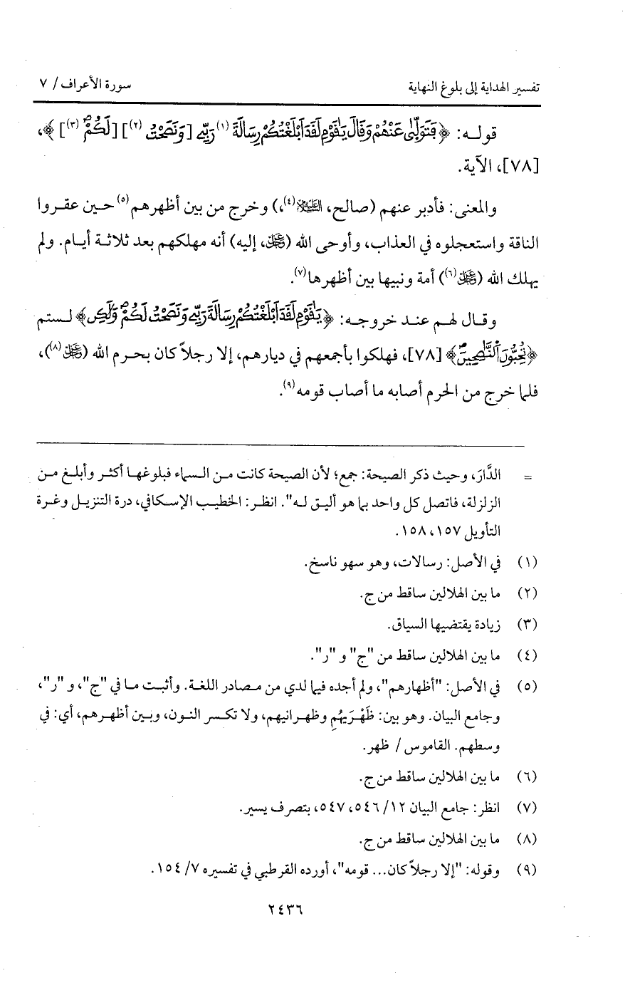 والمعنى: فأدبر عنهم (صالح، عليه السلام،) وخرج من بين أظهرهم حين عقروا الناقة واستعجلوه في العذاب، وأوحى الله ( D، إليه) أنه مهلكهم بعد ثلاثة أيام. ولم يهلك الله ( D) أمة ونبيها بين أظهرها.