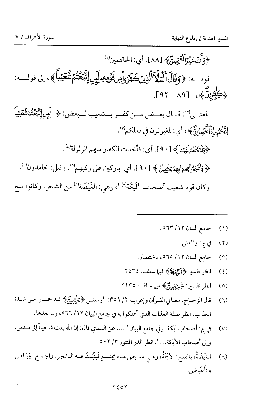 قوله: {وَقَالَ الملأ الذين كَفَرُواْ مِن قَوْمِهِ لَئِنِ اتبعتم شُعَيْباً}، إلى قوله: {كافرين}.