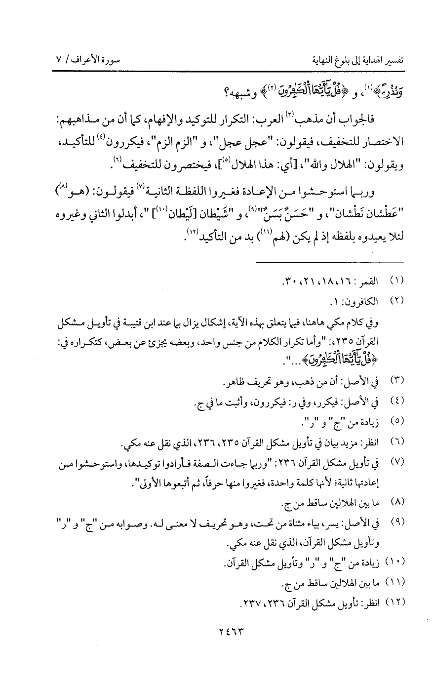 فالجواب أن مذهب العرب: التكرار للتوكيد والإفهام، كما أن من مذابهم: الاختصار للتخفيف، فيقولون: " عجل عجل "، و " الزم الزم "، فكررون للتأكيد، ويقولون: " الهلال والله ". [أي: هذا الهلال]، فيختصرون للتخفيف.