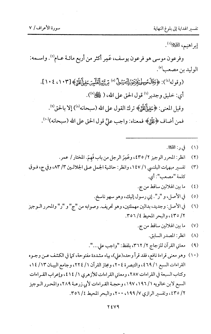 (وقوله): {وَقَالَ موسى يافرعون إِنِّي رَسُولٌ مِّن رَّبِّ العالمين * حَقِيقٌ عَلَى}.