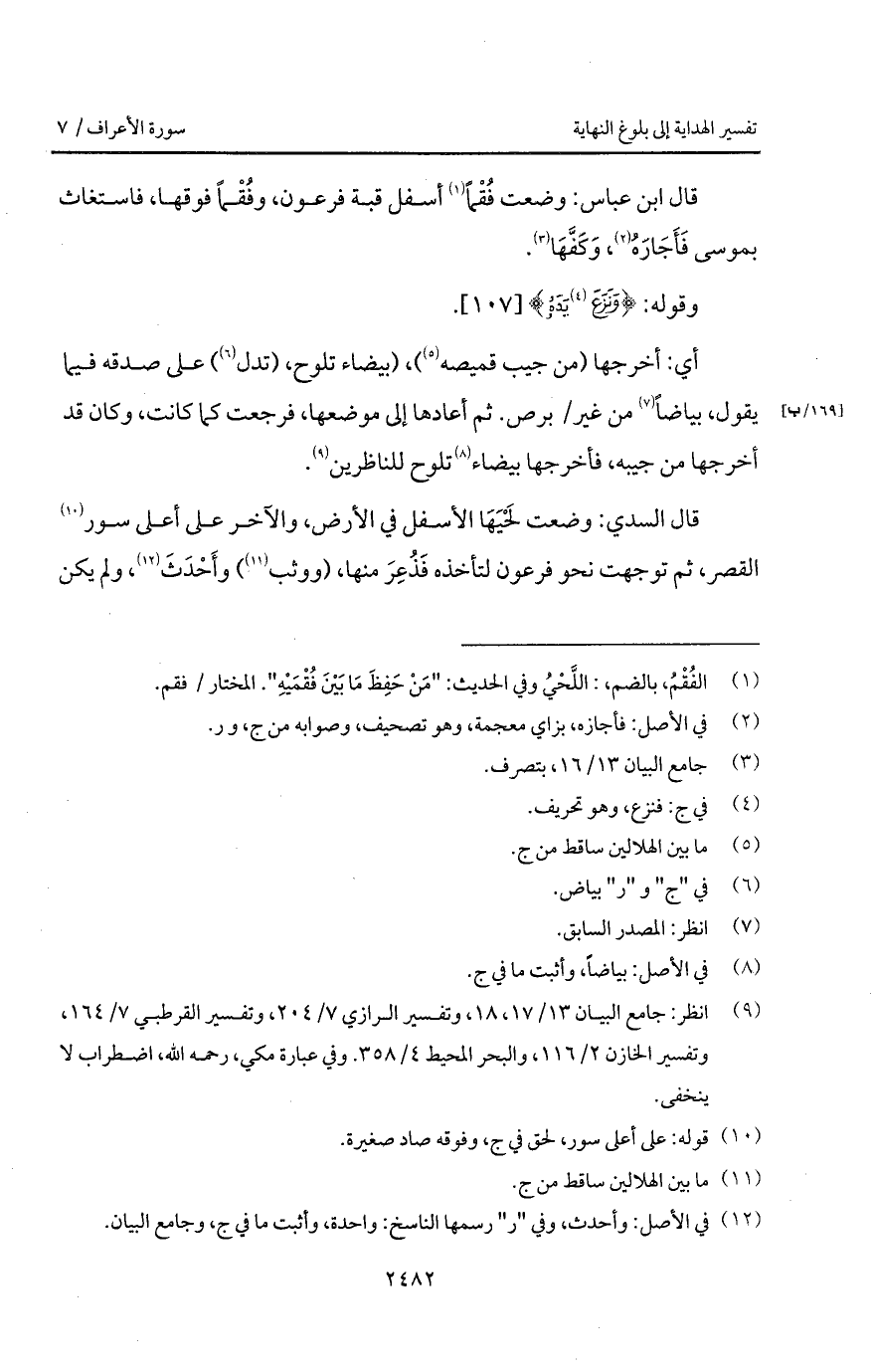 أي: أخرجها (من جيب قميصه)، (بيضاء تلوح، (تدل) على صدقه فيما يقول، بياضاً من غير/ برص. ثم أعادها إلى موضعها، فرجعت كما كانت، وكان قد أخرجها من جيبه، فأخرجها بيضاء تلوح للناظرين.