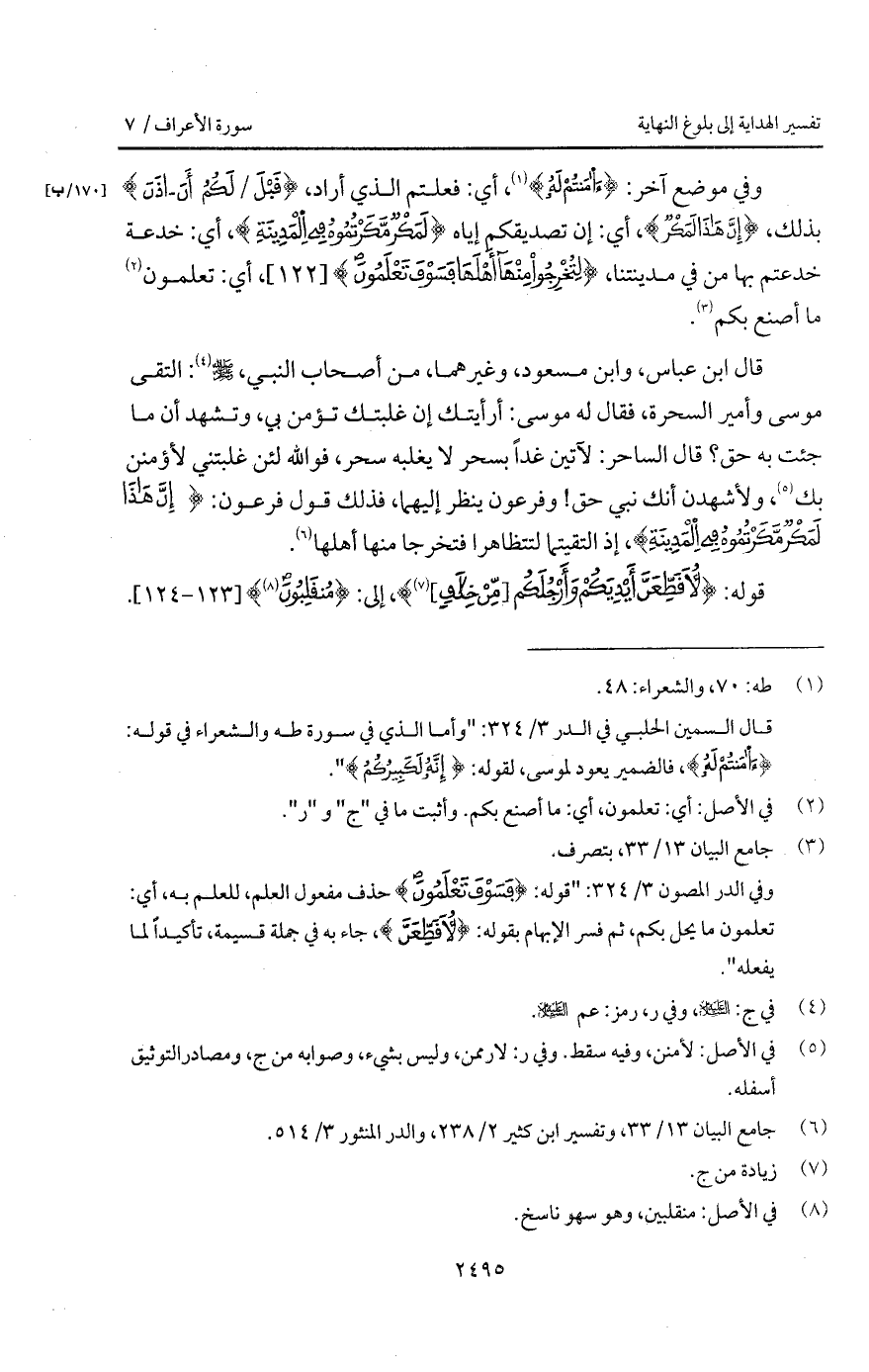 قوله: {لأُقَطِّعَنَّ أَيْدِيَكُمْ وَأَرْجُلَكُمْ [مِّنْ خِلاَفٍ]}، إلى: {مُنقَلِبُونَ}.