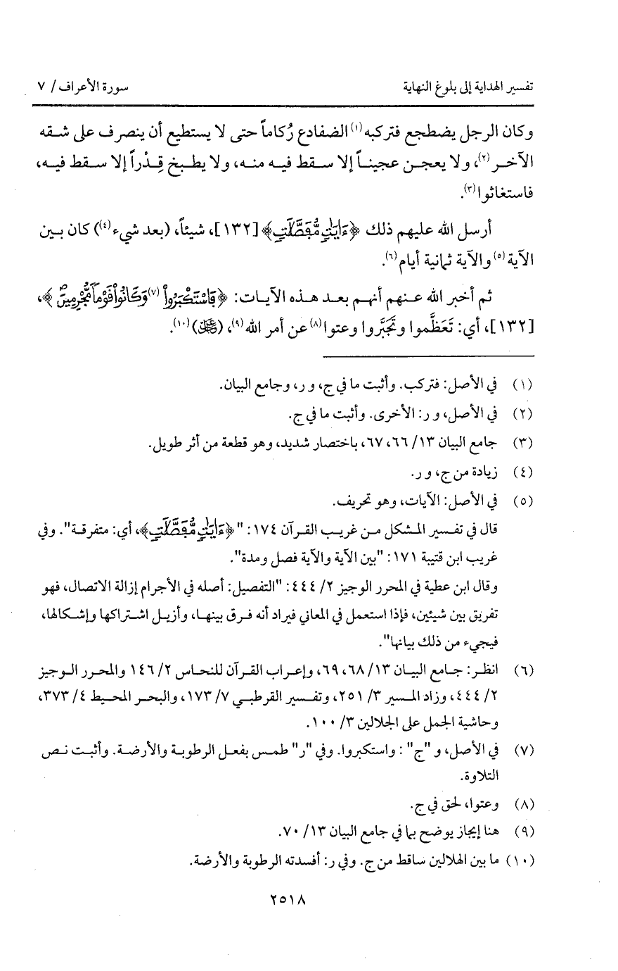 أرسل الله عليهم ذلك {آيَاتٍ مّفَصَّلاَتٍ}، شيئاً، (بعد شيء) كان بين الآية والآية ثمانية أيام.