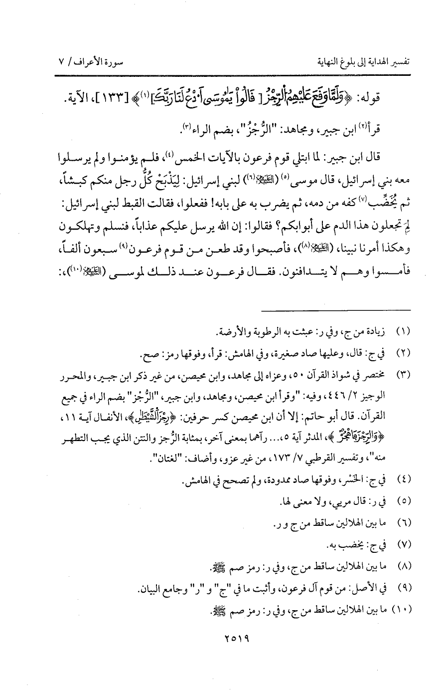 قوله: {وَلَمَّا وَقَعَ عَلَيْهِمُ الرجز [قَالُواْ ياموسى ادع لَنَا رَبَّكَ]}، الآية.