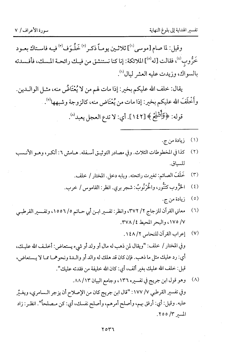 وقيل: لما صام [موسى] ثلاثين يوماً ذكر خَلُوف فيه فاستاك بعود خَرُّوبٍ، فقالت [له] الملائكة: إنا كنا نستنشق من فيك رائحة المسك، فأفسدته بالسواك، وزيدت عليه العشر ليال.
