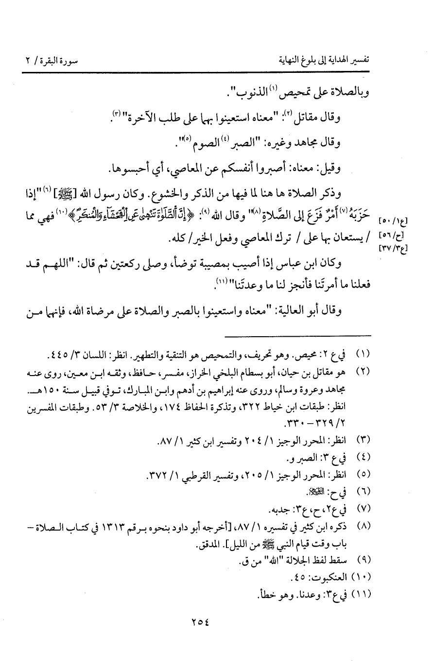 وقال أبو العالية: " معناه واستعينوا بالصبر والصلاة على مرضاة الله، فإنهما من