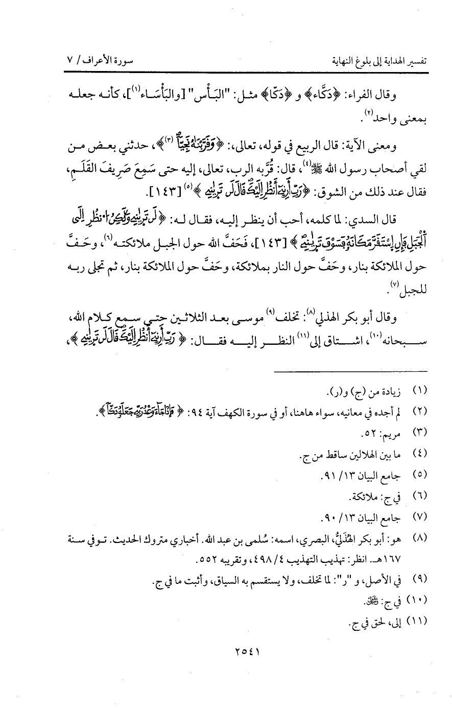ومعنى الآية: قال الربيع في قوله، تعالى: {وَقَرَّبْنَاهُ نَجِيّاً} [مريم: 52]، حدثني بعض من لقي أصحاب رسول الله A، قال: قُرَّبه الرب، تعالى، إليه حتى سَمِعَ صَرِيفَ القَلَمِ، فقال عند ذلك من الشوق: {رَبِّ أرني أَنظُرْ إِلَيْكَ قَالَ لَن تَرَانِي}.