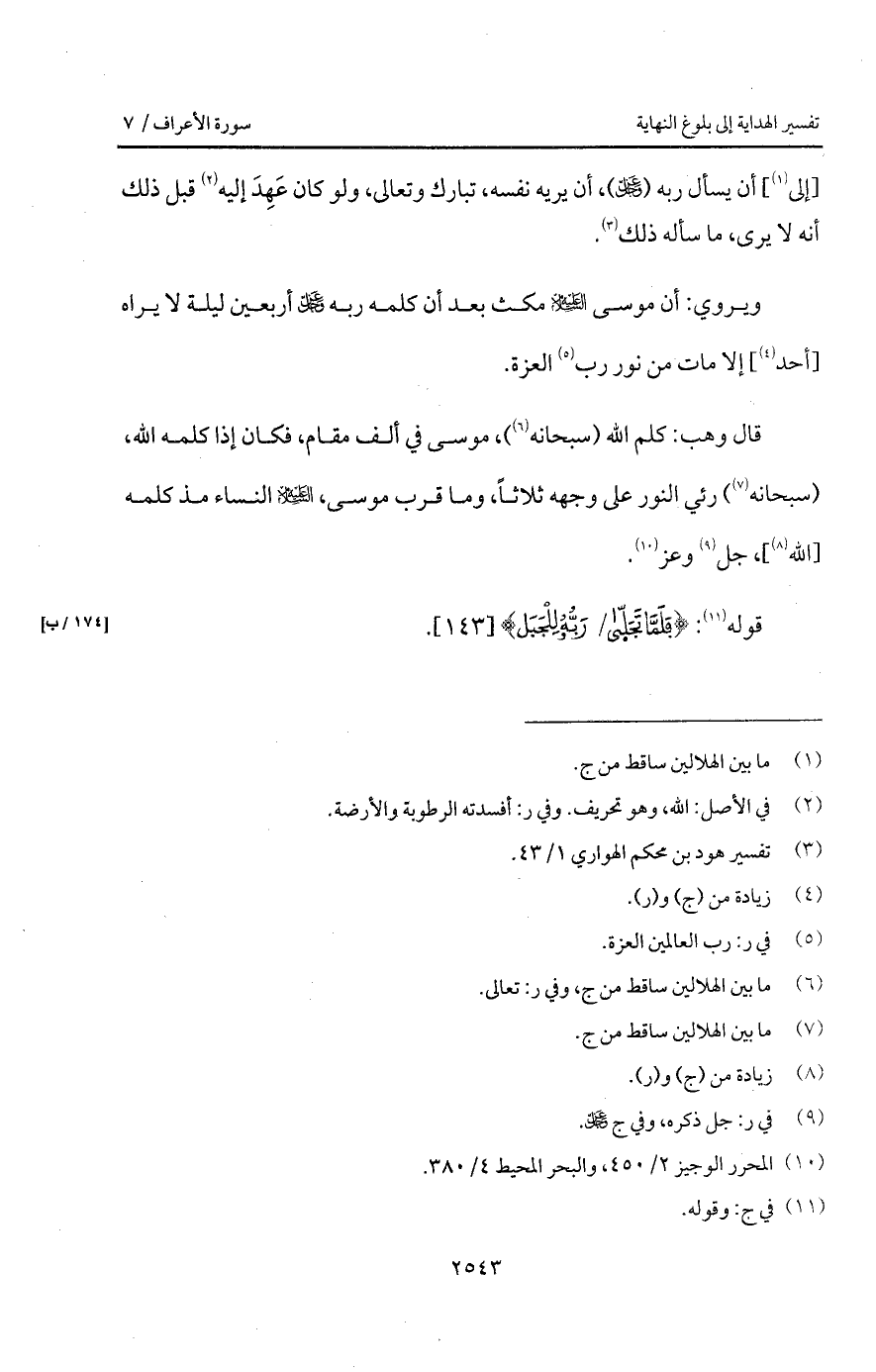 قال وهب: كلم الله (سبحانه)، موسى في ألف مقام، فكان إذا كلمه الله، (سبحانه) رئي النور على وجهه ثلاثاً، وما قرب موسى، عليه السلام النساء مذ كلمه [الله]، جل وعز.