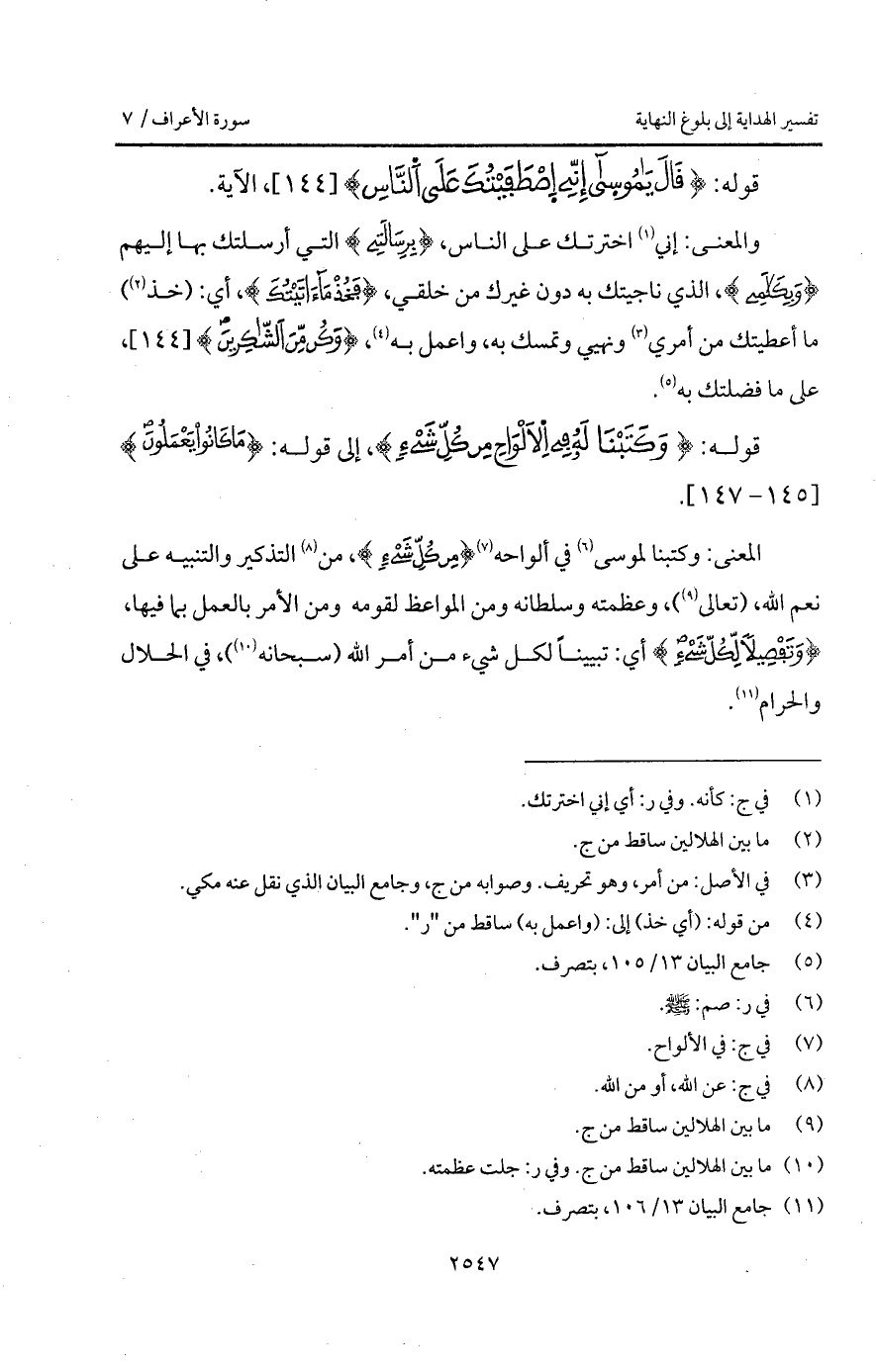 قوله: {قَالَ ياموسى إِنِّي اصطفيتك عَلَى الناس}، الآية.