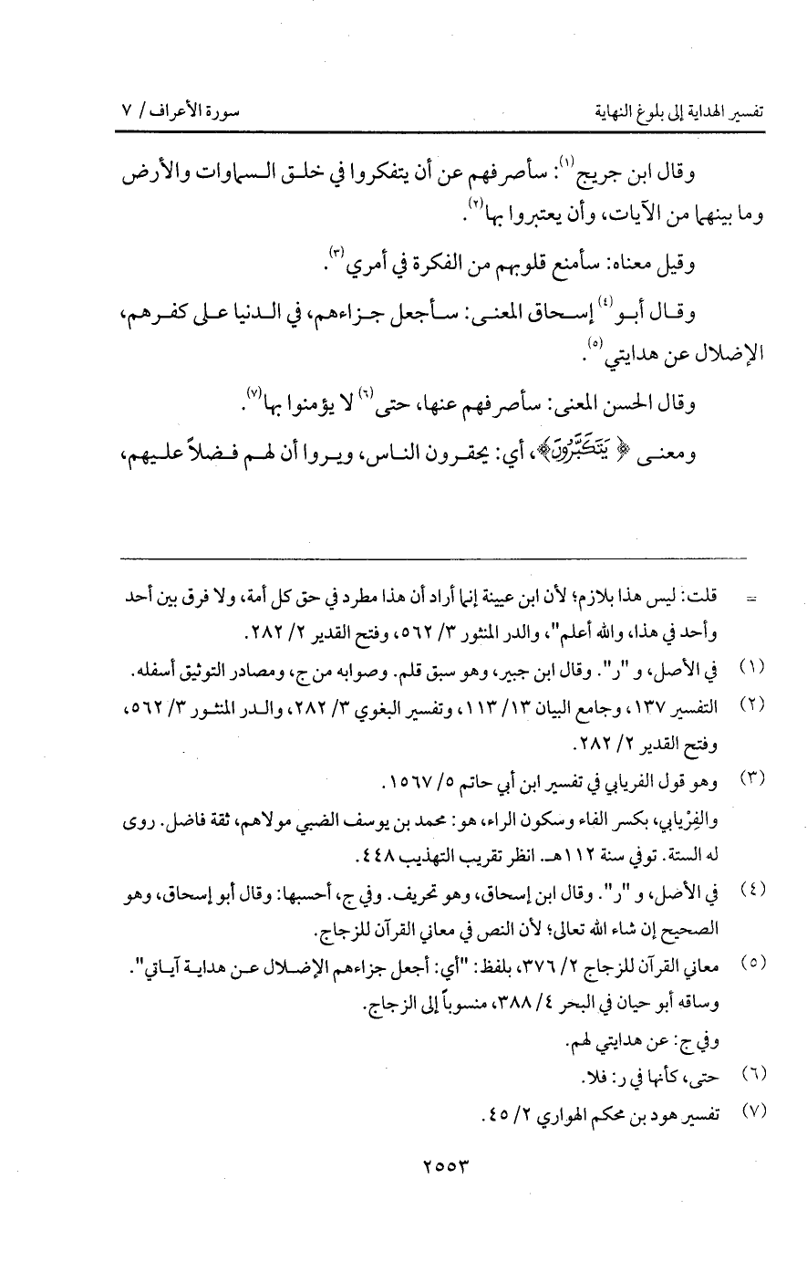 وقال ابن جريج: سأصرفهم عن أن يتفكروا في خلق السماوات والأرض وما بينهما من الآيات، وأن يعتبروا بها.