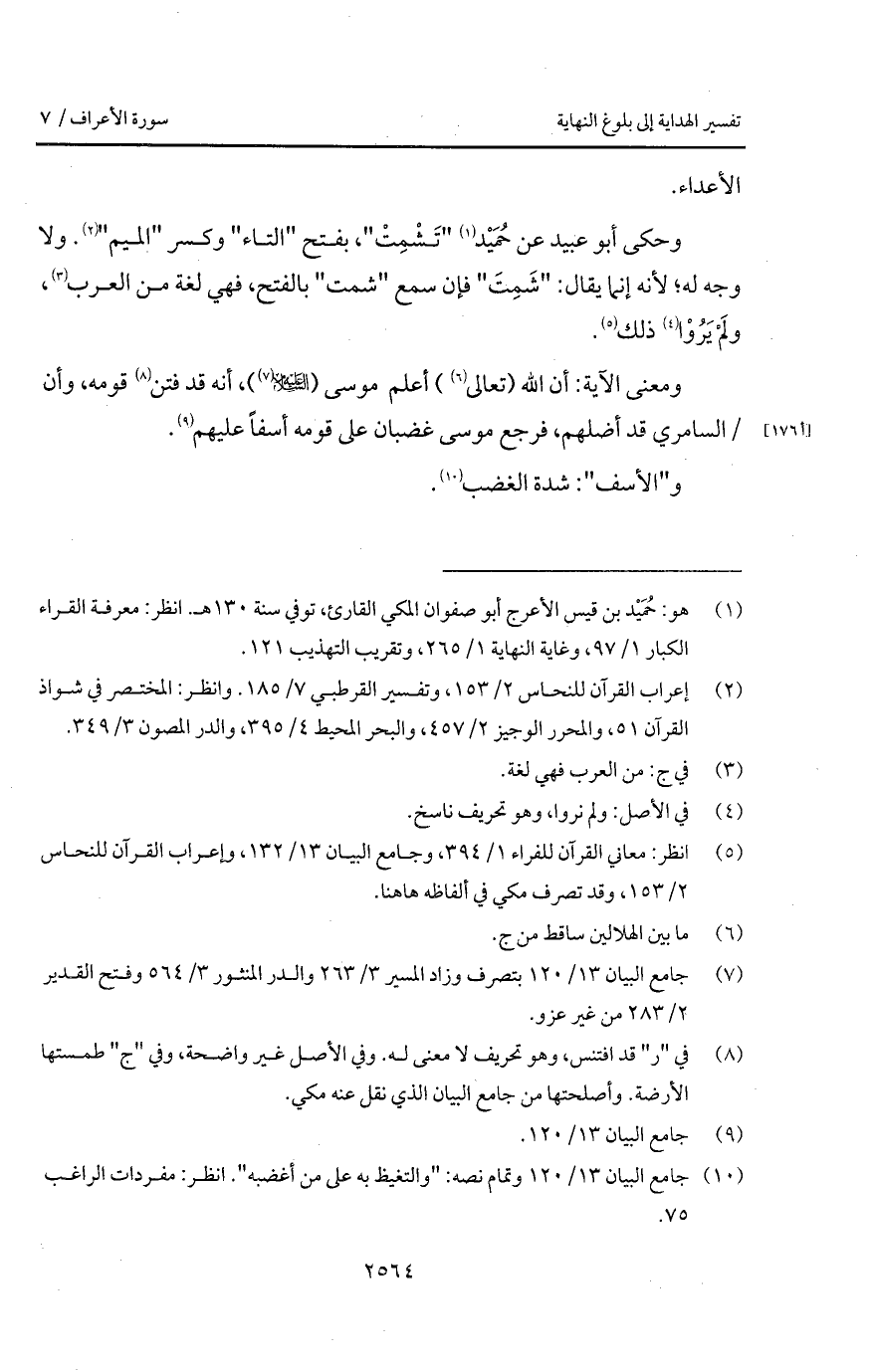 وحكى أبو عبيد عن حُمَيْد " تَشْمِتْ "، بفتح " التاء " وكسر " الميم ". ولا جه له؛ لأنه إنما يقال: " شَمِتَ " فإن سمع " شمت " بالفتح، فهي لغة من العرب، ولَمْ يَرُوْا ذلك.