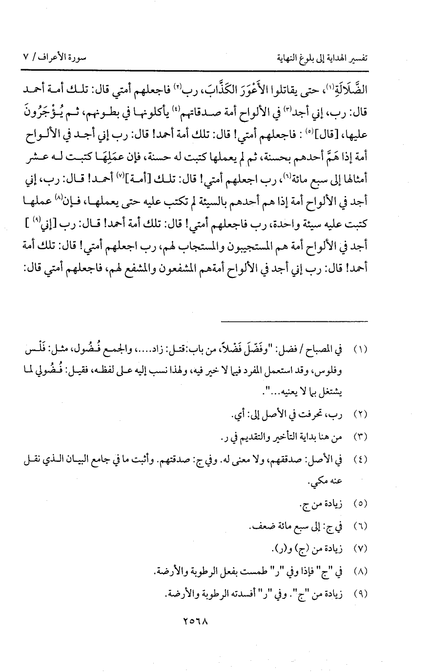 الضَّلاَلَةِ، حتى يقاتلوا الأَعْوَرَ الكَذَّابَ، رب فاجعلهم أمتي قال: تلك أمة أحمد قال: رب، إني أجد في الألواح أمة صدقاتهم يأكلونها في بطونهمه، ثم يُؤْجَرُونَ عليها، [قال]: فاجعلهم أمتي! قال: تلك أمة أحمد! قال: رب إني إجد في الألواح أمة إذا هَمَّ أحدهم بحسنة، ثم لم يعملها كتبت له حسنة، فإن عمَلِهَا كتبت له عشر أمثالها إلى سبع مائة، رب اجعلهم أمتي! قال: تلك [أمة] أحمد! قال: رب، إني أجد في الألواح أمة إذا هم أحدهم بالسيئة لم تكتب عليه حتى يعملها، فإن عملها كتبت عليه سيئة واحدة، رب فاجعلهم أمتي! قال: تلك أمة أحمد! قال: رب [إني] أجد في الألواح أمة هم المستجيبون والمستجاب لهم، رب اجعلهم أمتي! قال: تلك أمة أحمد! قال: رب إني أجد في الألواح أمة هم المشفعون والمشفع لهم، فاجعلهم أمتي قال: