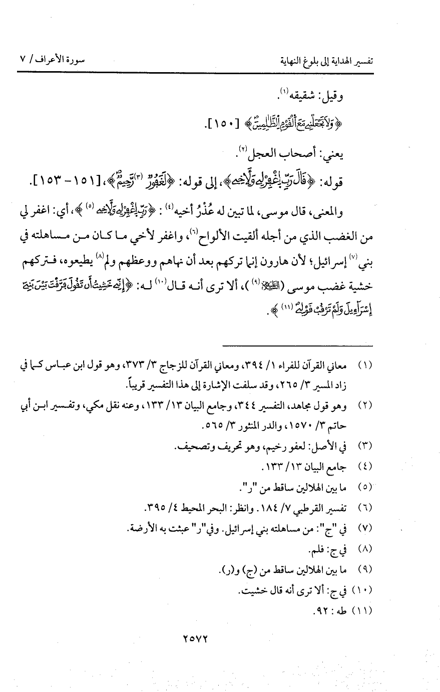 قوله: {قَالَ رَبِّ اغفر لِي وَلأَخِي}، إلى قوله: {لَغَفُورٌ رَّحِيمٌ}.